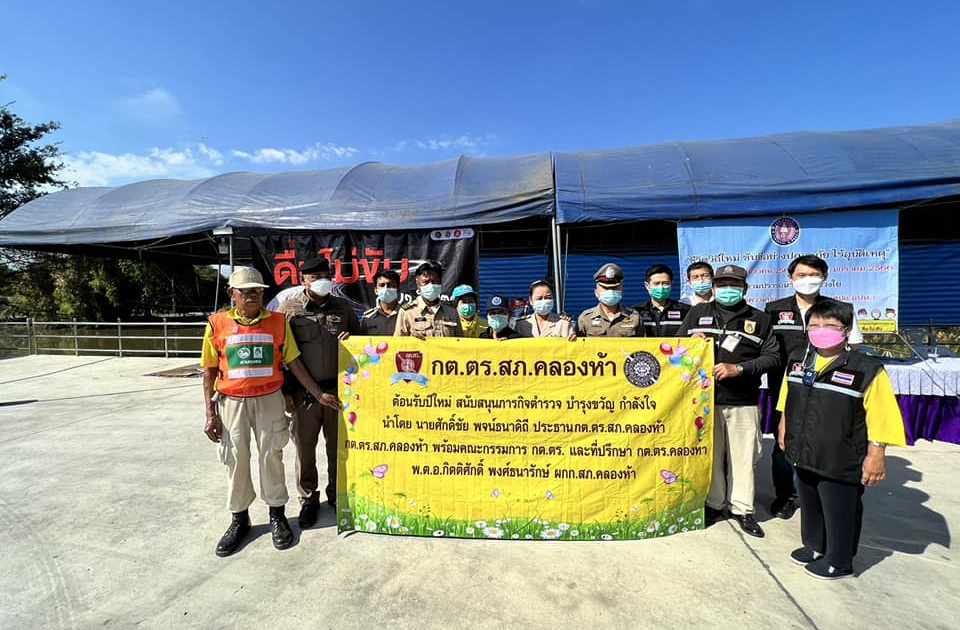 มอบเครื่องดื่มและอาหาร ให้ข้าราชการตำรวจ สภ.คลองห้า เพื่อเป็นขวัญกำลังใจในการปฎิบัติหน้าที่ในห้วงเทศกาลปีใหม่ โดยมี พ.ต.อ.กิตติศักดิ์ พงศ์ธนารักษ์ ผกก.สภ.คลองห้า เป็นผู้รับมอบ