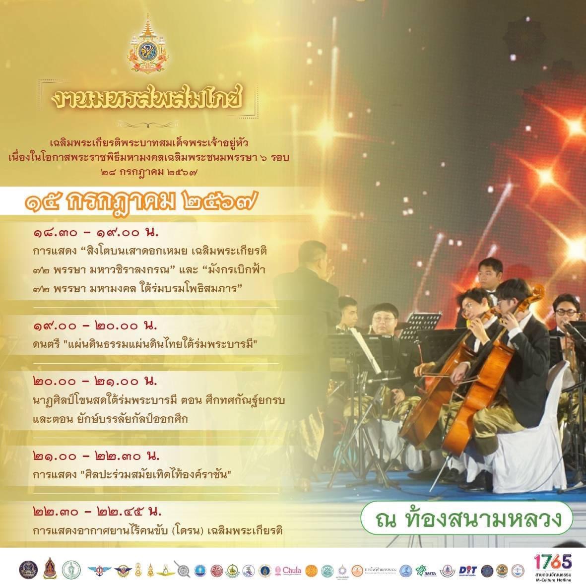 • ← เก่ากว่า กระทรวงวัฒนธรรม ขอเชิญประชาชนร่วมงานมหรสพสมโภชเฉลิมพระเกียรติพระบาทสมเด็จพระเจ้าอยู่หัว เนื่องในโอกาสพระราชพิธีมหามงคลเฉลิมพระชนมพรรษา ๖ รอบ ๒๘ กรกฎาคม ๒๕๖๗