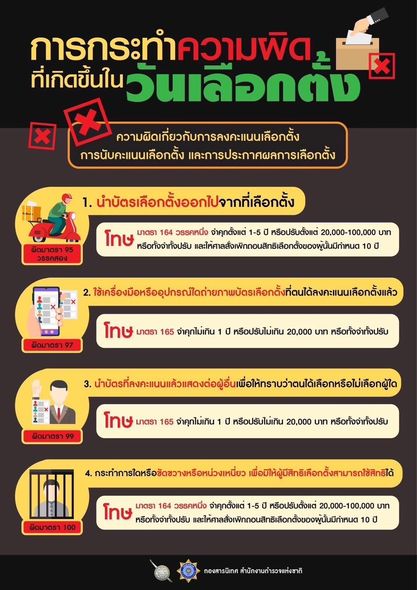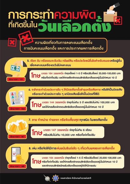 ตร. เตือน 8 ข้อ อย่าหาทำ “ในวันเลือกตั้ง” โทษหนัก ทั้งจำและปรับ