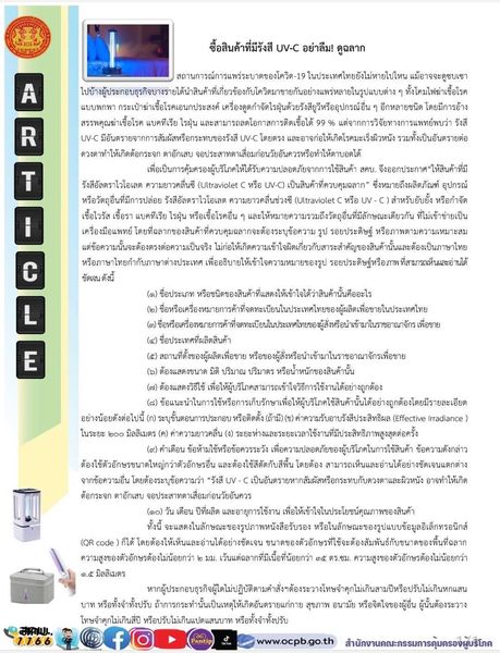 !ซื้อสินค้าที่มีรังสี UV-C อย่าลืมดูฉลาก