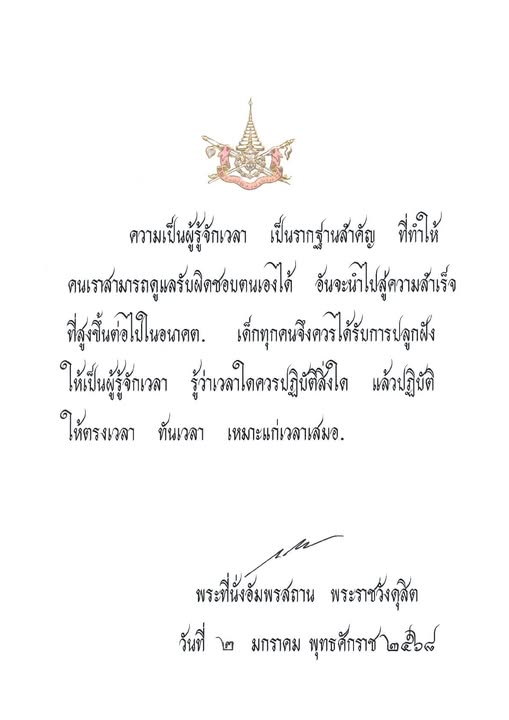 พระบรมราโชวาทพระบาทสมเด็จพระเจ้าอยู่หัว เนื่องในโอกาสวันเด็กแห่งชาติ ประจำปีพุทธศักราช ๒๕๖๘