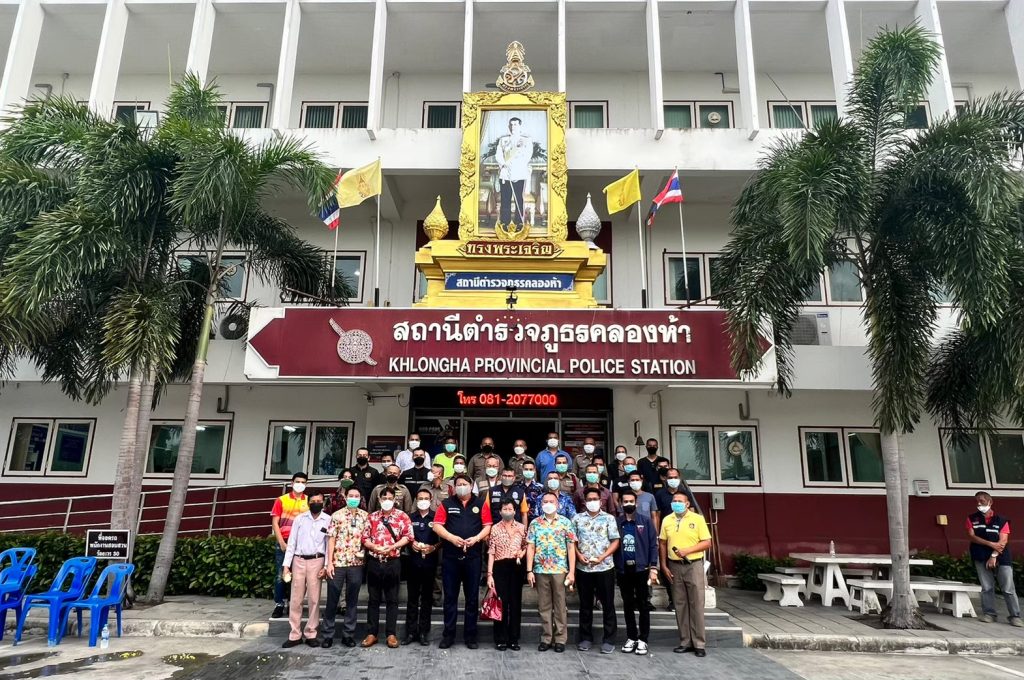 พ.ต.อ.กิตติศักดิ์ พงศ์ธนารักษ์ ผกก.สภ.คลองห้า และคณะ กต.ตร.,คณะที่ปรึกษาฯ เนื่องในเทศกาลสงกรานต์ 2565 บริเวณหน้า สภ.คลองห้า