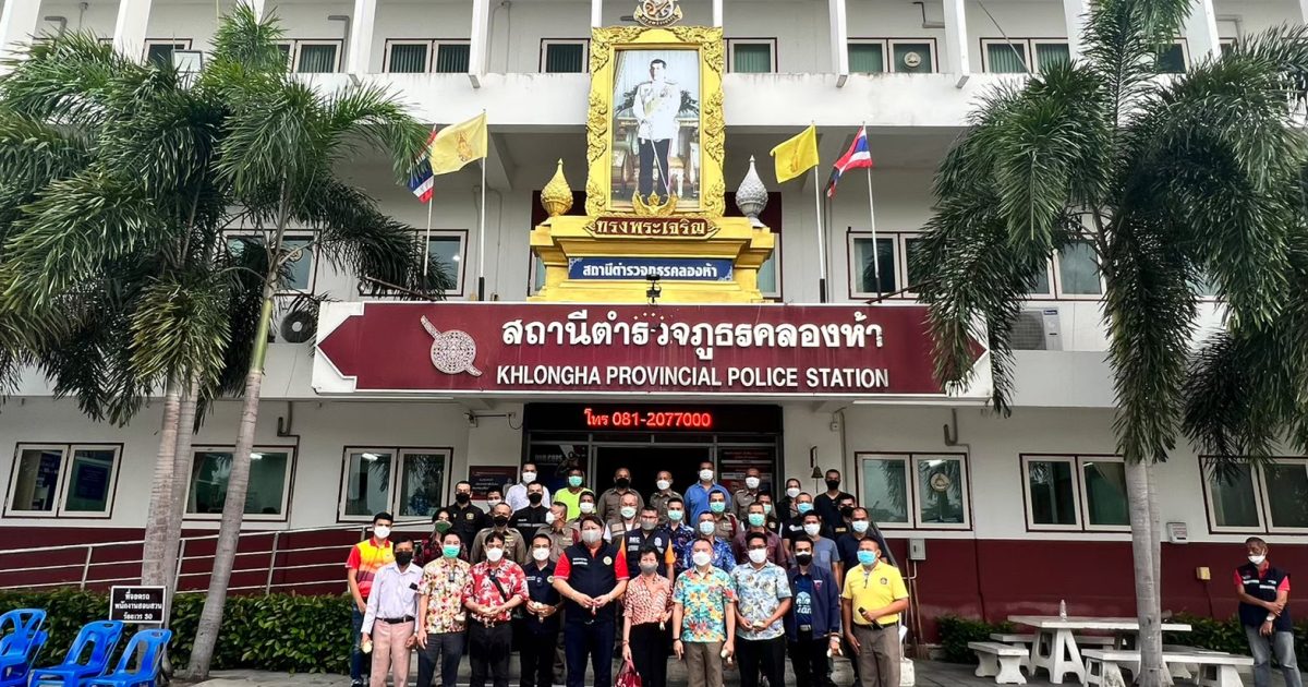 พ.ต.อ.กิตติศักดิ์ พงศ์ธนารักษ์ ผกก.สภ.คลองห้า และคณะ กต.ตร.,คณะที่ปรึกษาฯ เนื่องในเทศกาลสงกรานต์ 2565 บริเวณหน้า สภ.คลองห้า