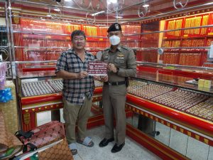 พ.ต.ท.จตุพงศ์ สมมัง รอง ผกก.ป.ฯ ประชาสัมพันธ์เตือนภัยร้านทอง