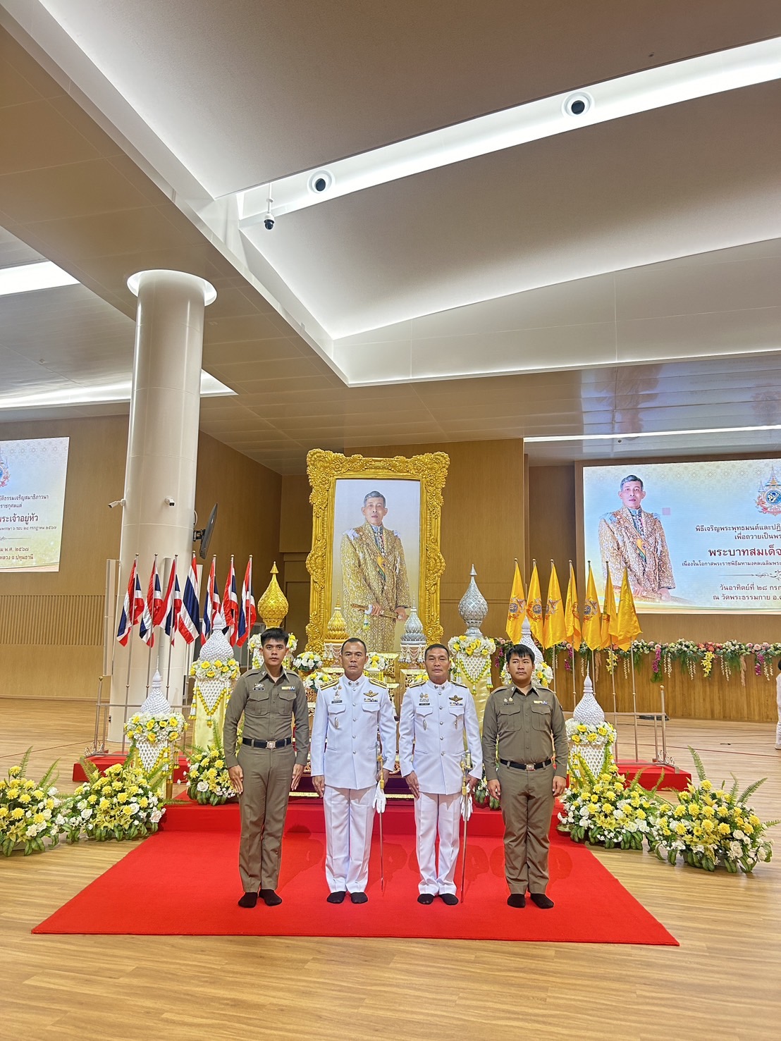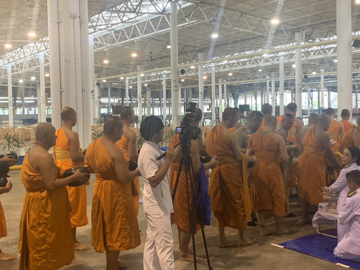 พร้อมข้าราชการตำรวจ สภ.คลองห้า 2 นาย เข้าร่วมพิธีเจริญพระพุทธมนต์และพิธีทำบุญตักบาตรถวายพระราชกุศล พระบาทสมเด็จพระเจ้าอยู่หัว เนื่องในโอกาสพระราชพิธีมหามงคลเฉลิมพระชนมพรรษา 6 รอบ ณ ห้องแก้วสารพัดนึก 2 วัดพระธรรมกาย ตําบล คลองสาม อําเภอ คลองหลวง จังหวัด ปทุมธานี