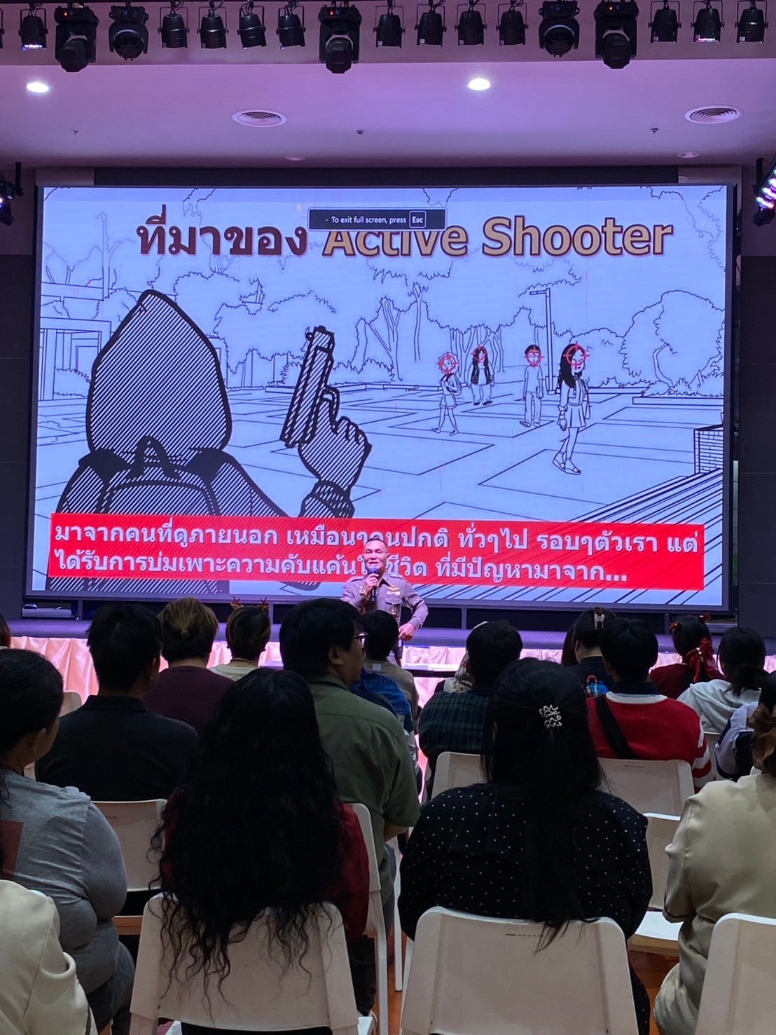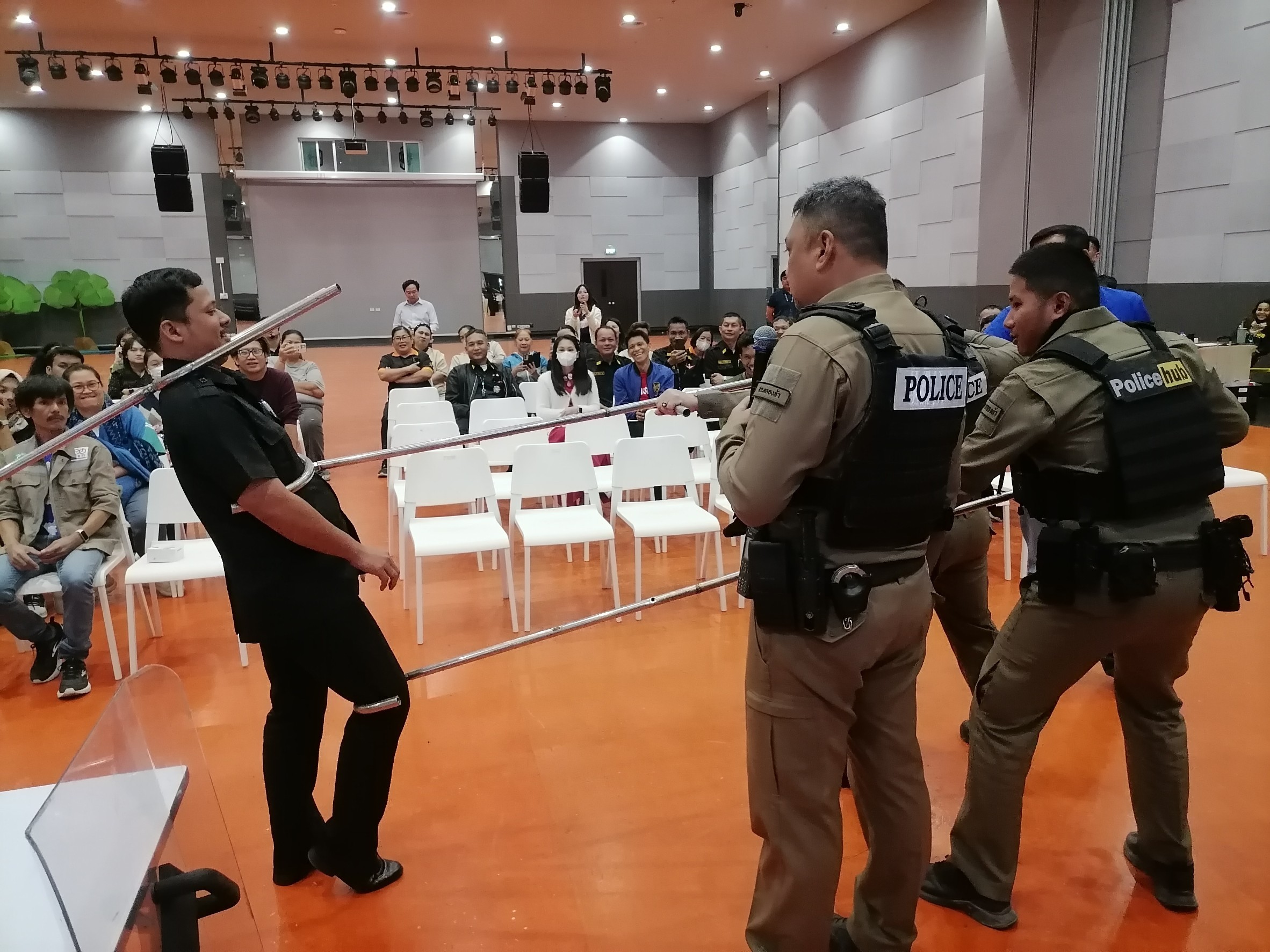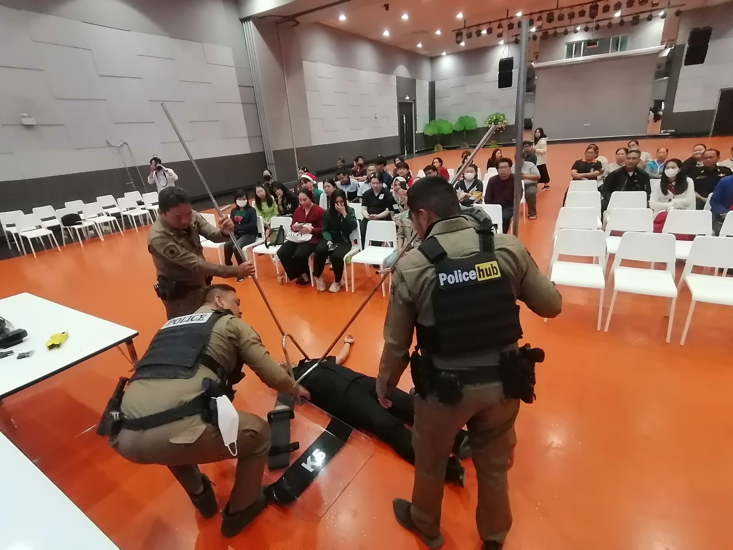 พ.ต.ท.ยนธกิจ แพงวงค์ สวป. สภ.คลองห้า วิทยากรอบรมบรรยายให้ความรู้ การป้องกัน และระงับเหตุ บุคคลคุ้มคลั่ง