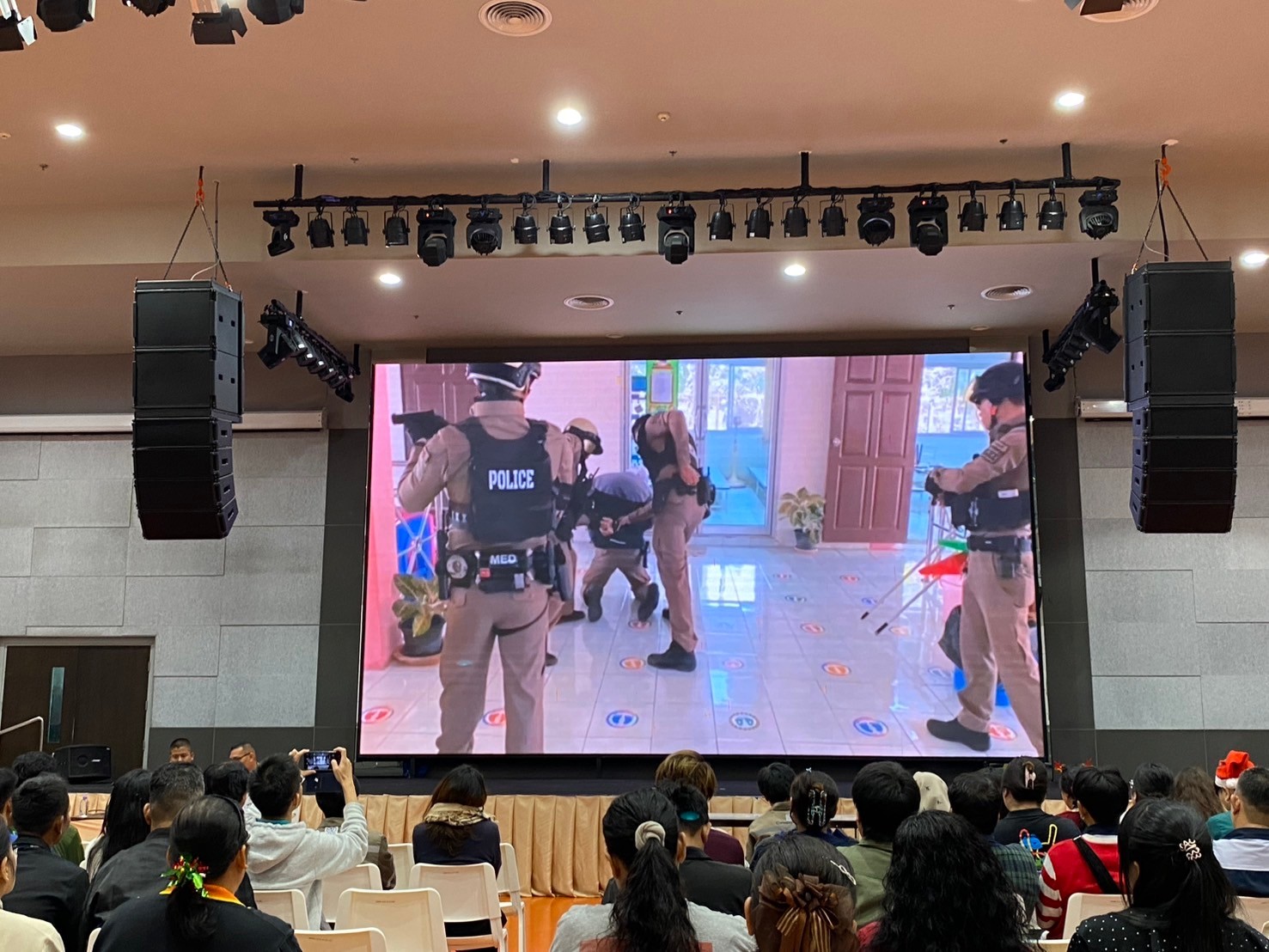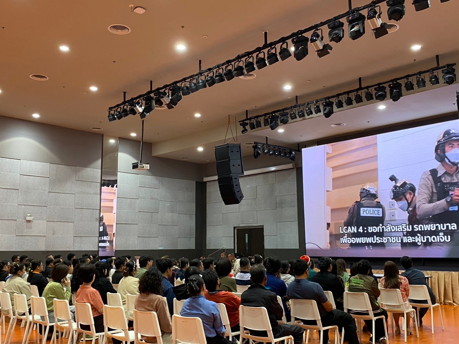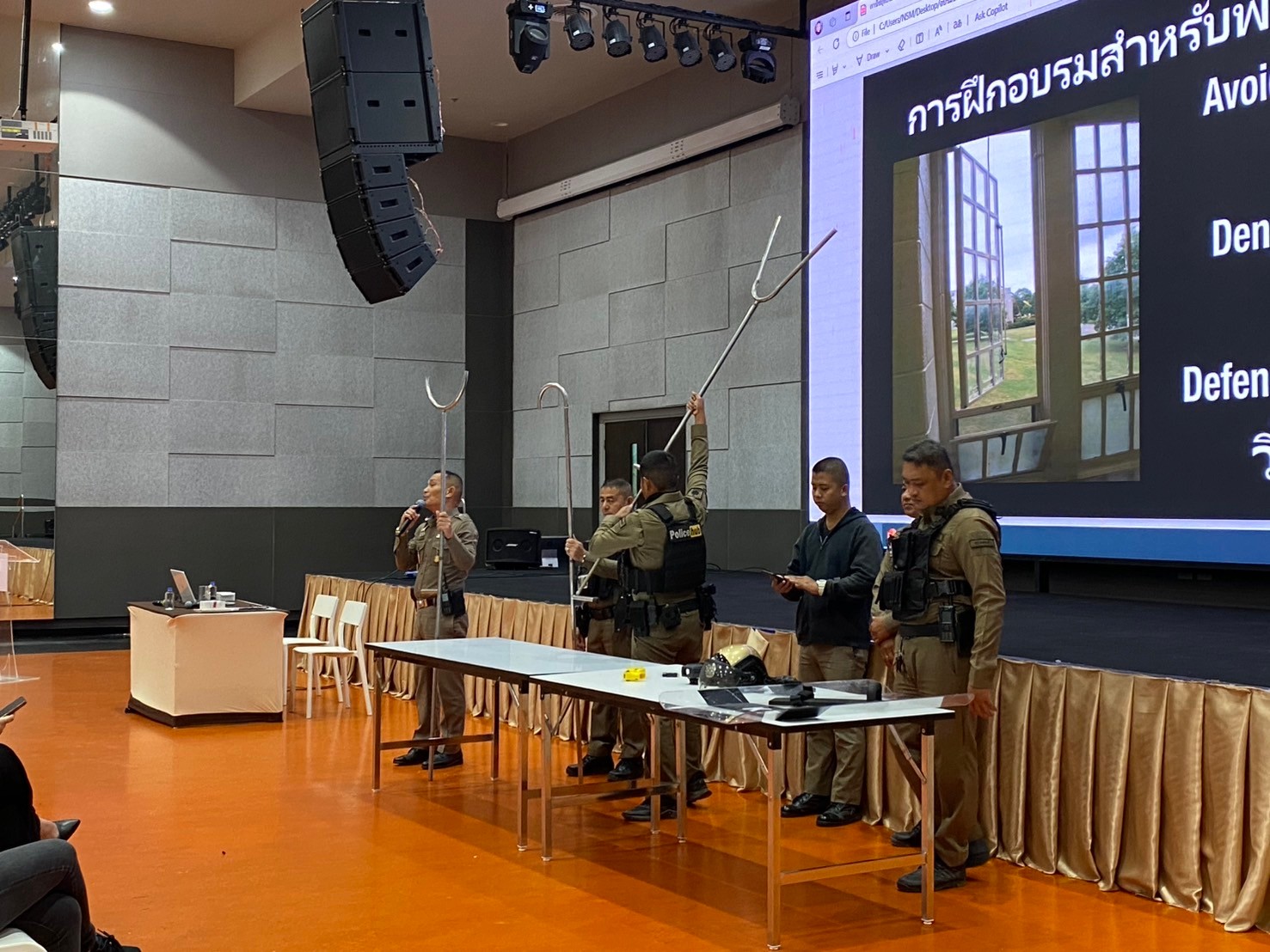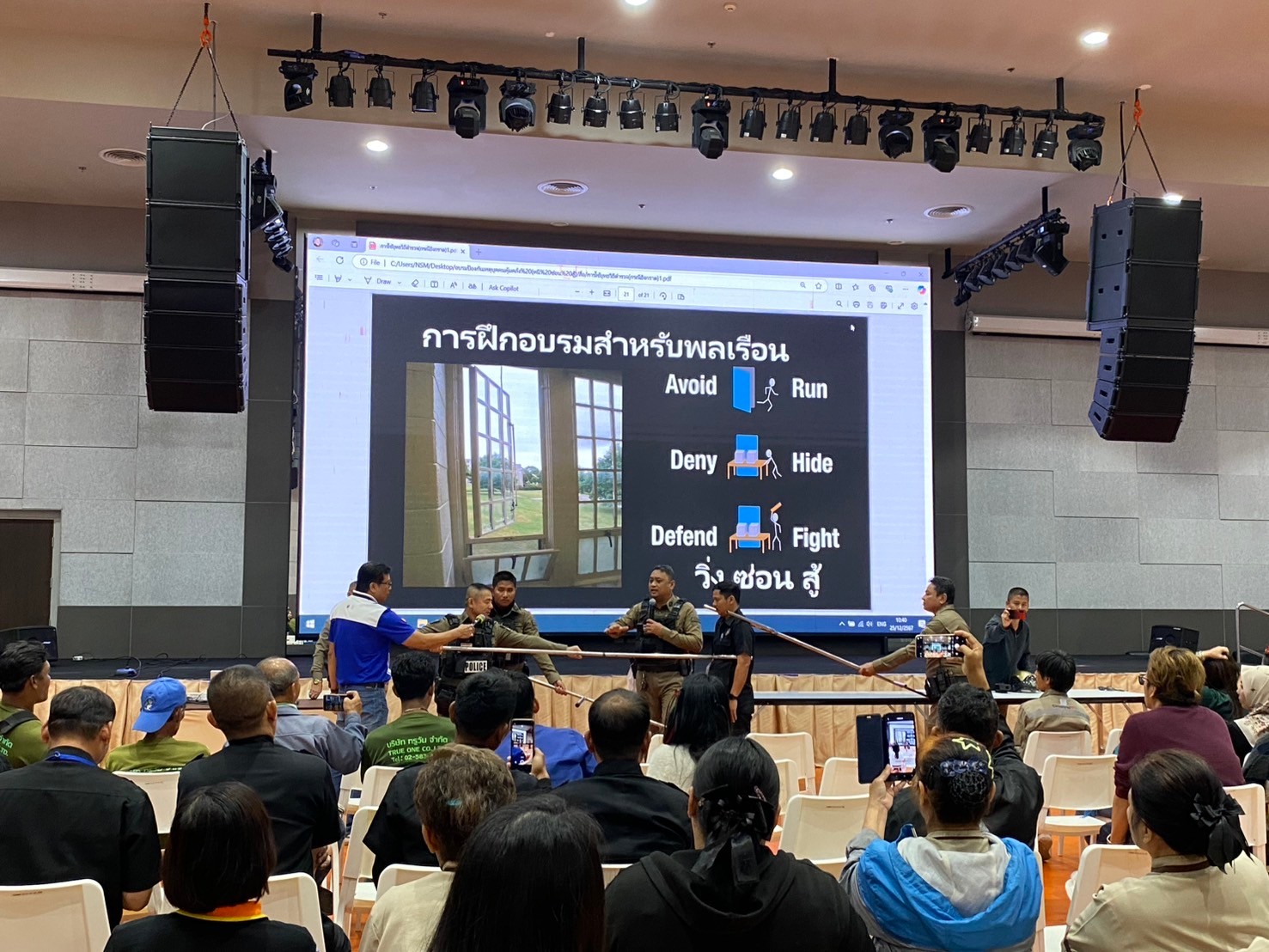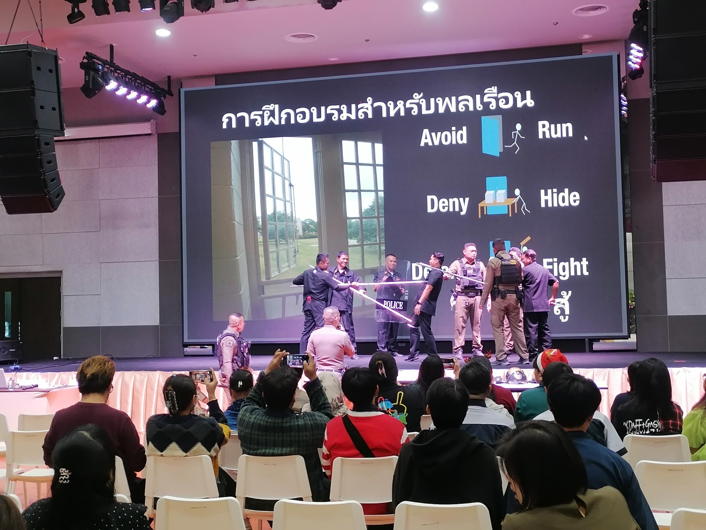 วิทยากรอบรมบรรยายให้ความรู้ การป้องกัน และระงับเหตุ บุคคลคุ้มคลั่ง ให้กับบุคลากรพิพิธภัณฑ์พระรามเก้า (อพวช.) ณ ห้องประชุม ชั้น 2 พิพิธภัณฑ์พระรามเก้า (อพวช.) พร้อมแจกสติกเกอร์ ประชาสัมพันธ์ ช่องทางการแจ้งเหตุด่วนเหตุร้าย และป้องกันรถจักยานยนต์หาย