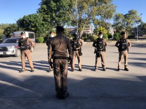 – ตรวจความพร้อม การแต่งกายเครื่องแบบ, อาวุธปืน, ทรงผม, เครื่องระสุนปืน, เสื้อเกราะกันกระสุน ,วิทยุสื่อสาร, กุญแจมือ, เสื้อสะท้อนแสง ยานพาหนะอุปกรณ์พร้อมปฏิบัติ