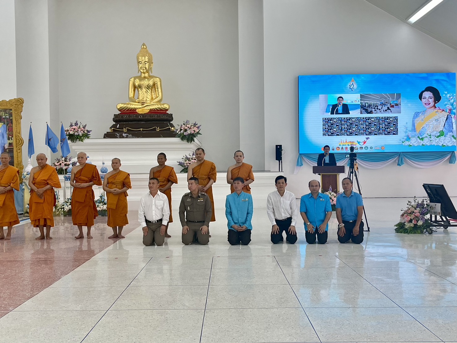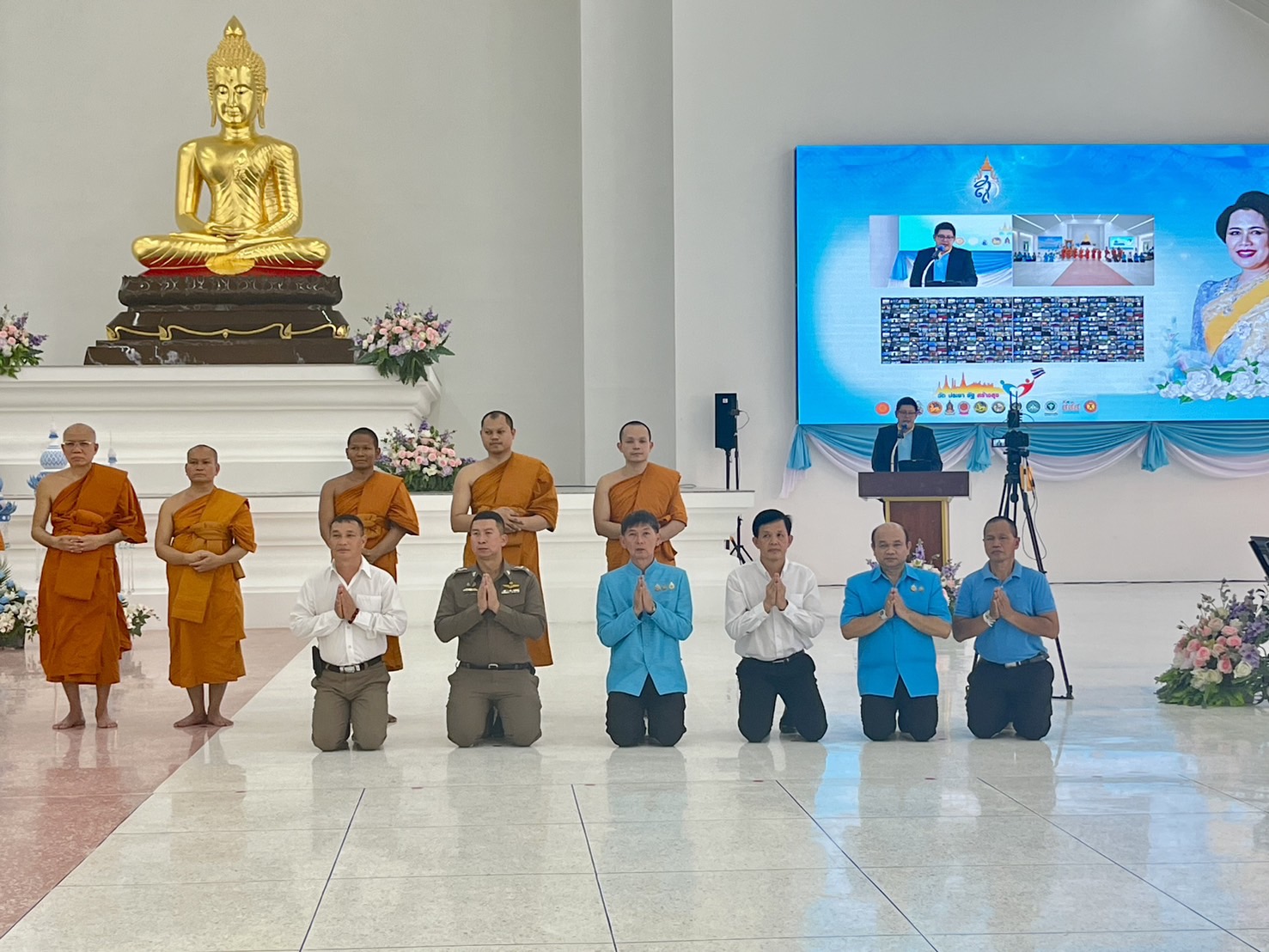 พร้อมข้าราชการตำรวจ สภ.คลองห้าเข้าร่วมพีธีเจริญพระพุทธมนต์ และบำเพ็ญจิตภาวนา เพื่อถวายเป็นพระราชกุศลแด่สมเด็จพระนางเจ้าสิริกิติ์ พระบรมราชินีนาถ พระบรมราชชนนีพันปีหลวง ณ อาคารปฏิบัติธรรมพระธรรมรัตนาภรณ์ วัดสายสุวรรณ ตำบลคลองสี่ อำเภอคลองหลวง จังหวัดปทุมธานี