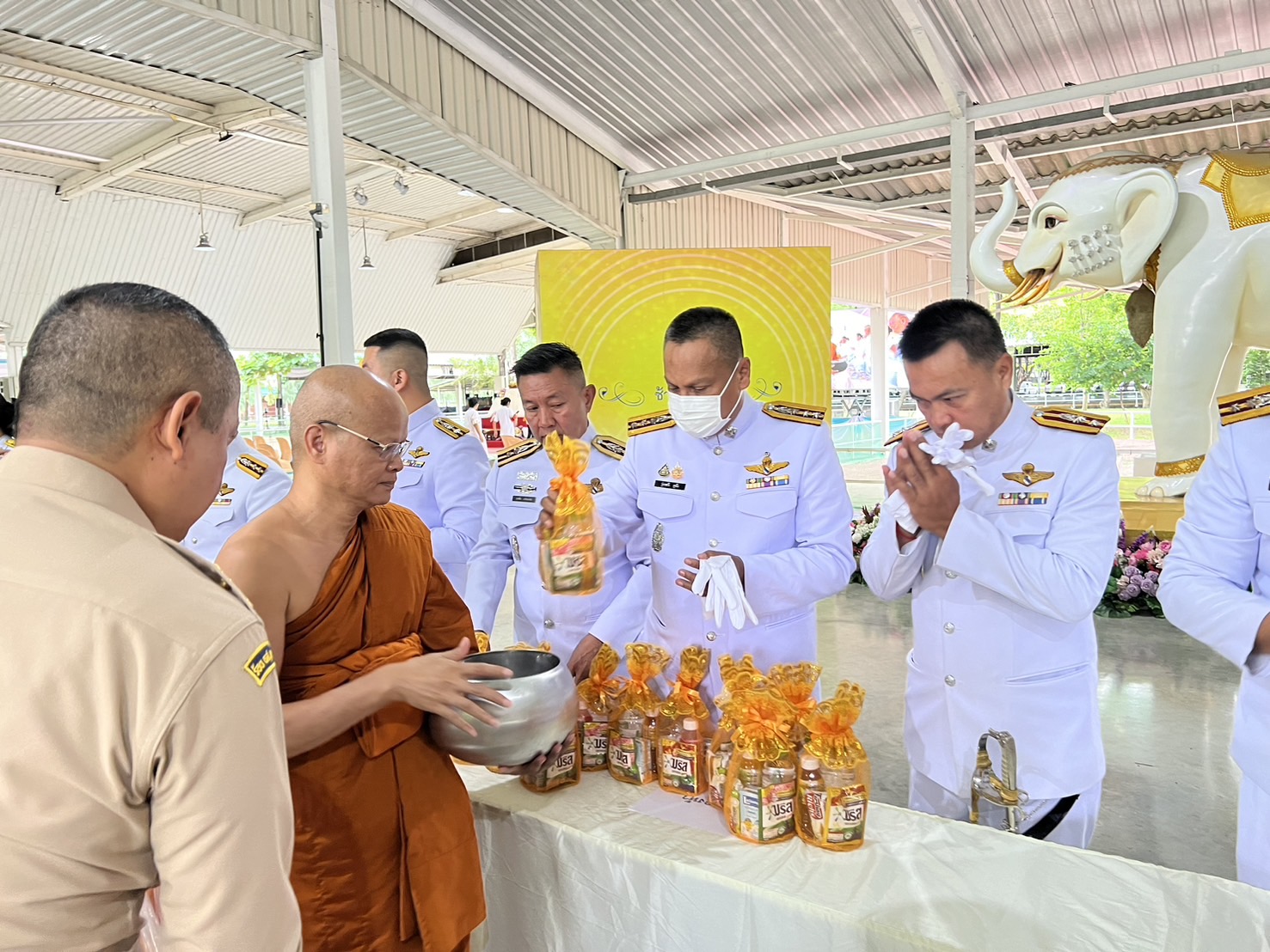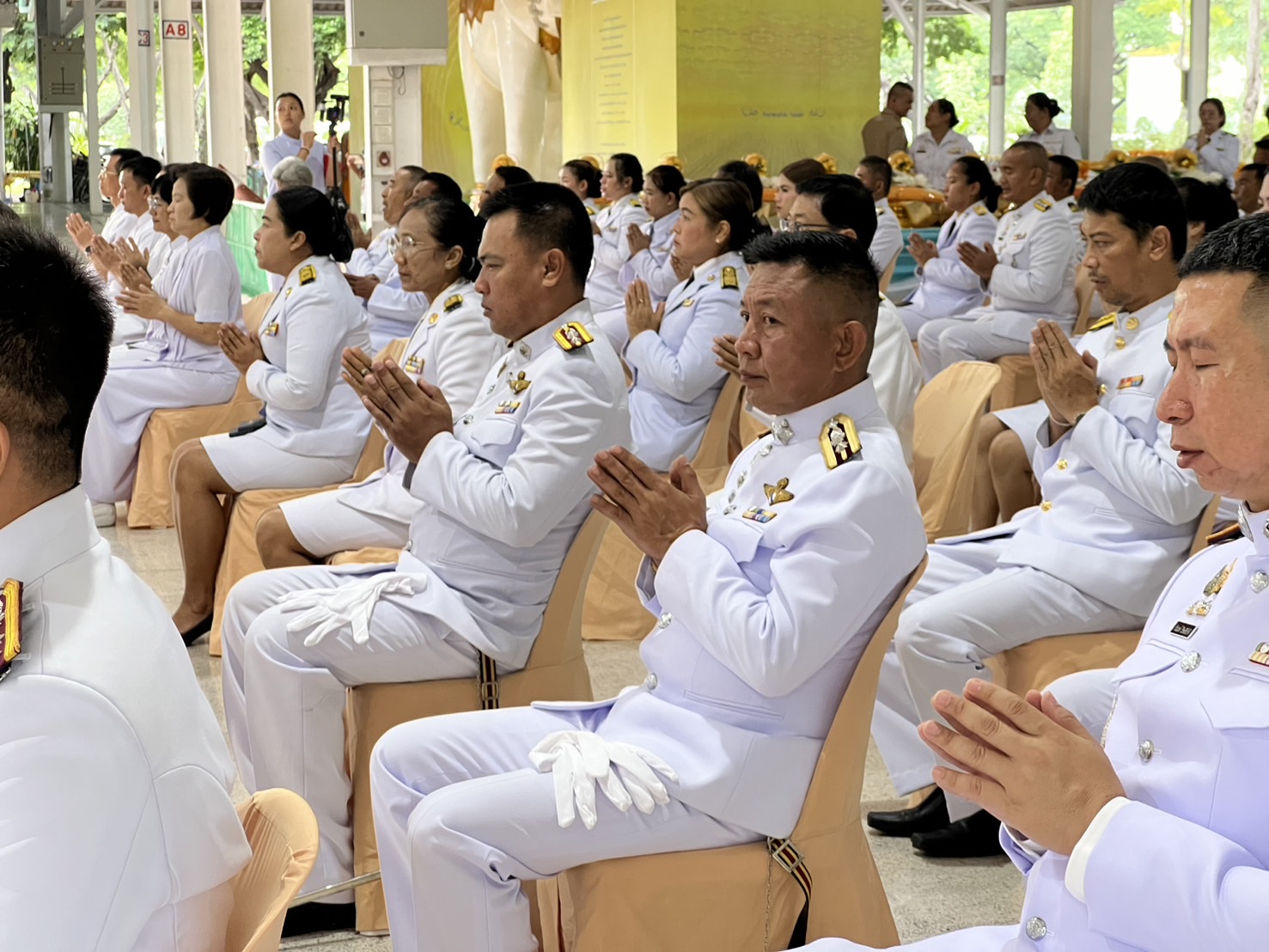 พ.ต.อ.รุ่งระวี สุขัง ผกก. สภ.คลองห้า เข้าร่วมพิธีเจริญพุทธมนต์และพิธีทำบุญตักบาตรถวายพระราชกุศล