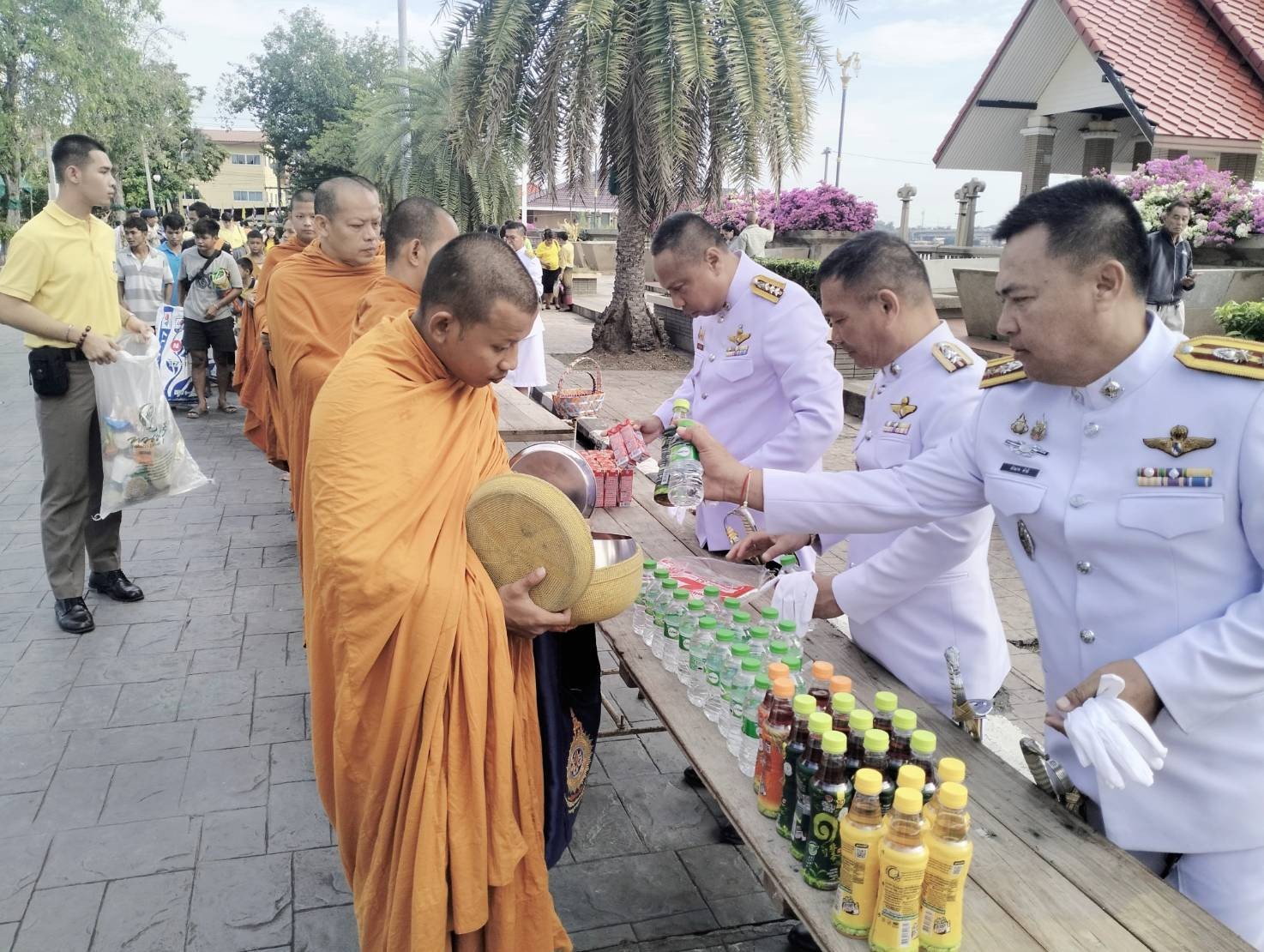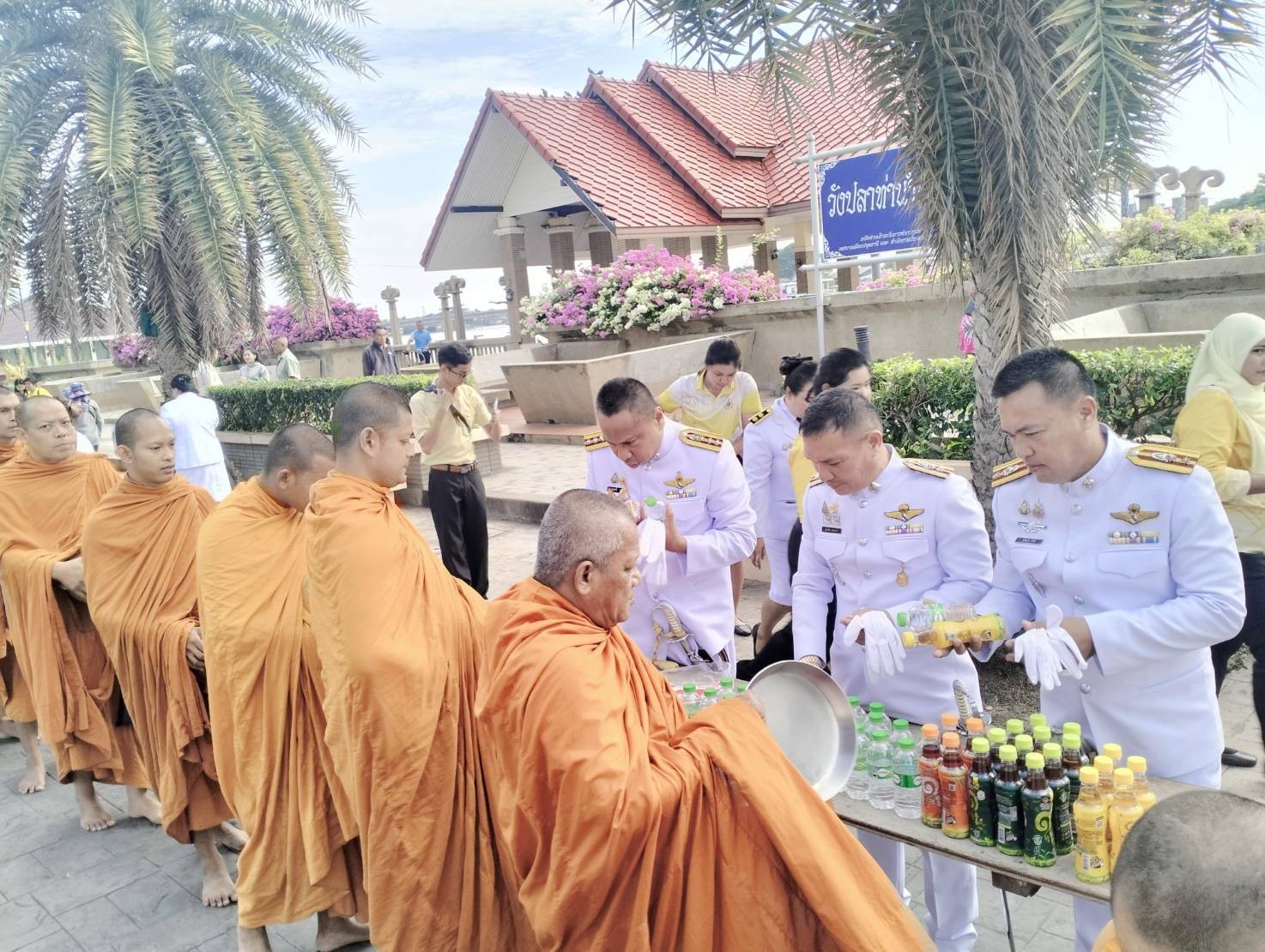 พ.ต.อ.รุ่งระวี สุขัง ผกก.สภ.คลองห้า เข้าร่วมพิธีสวดพุทธมนต์และทำบุญตักบาตรถวายพระราชกุศล เนื่องในวันนวมินทรมหาราช