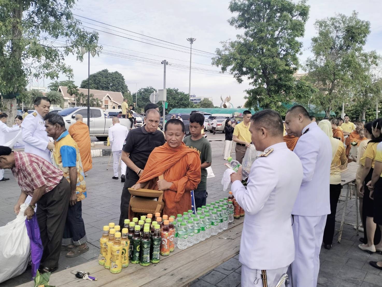 เข้าร่วมพิธีสวดพุทธมนต์และทำบุญตักบาตรถวายพระราชกุศล เนื่องในวันนวมินทรมหาราช ณ หน้าสำนักงานเหล่ากาชาดจังหวัดปทุมธานี