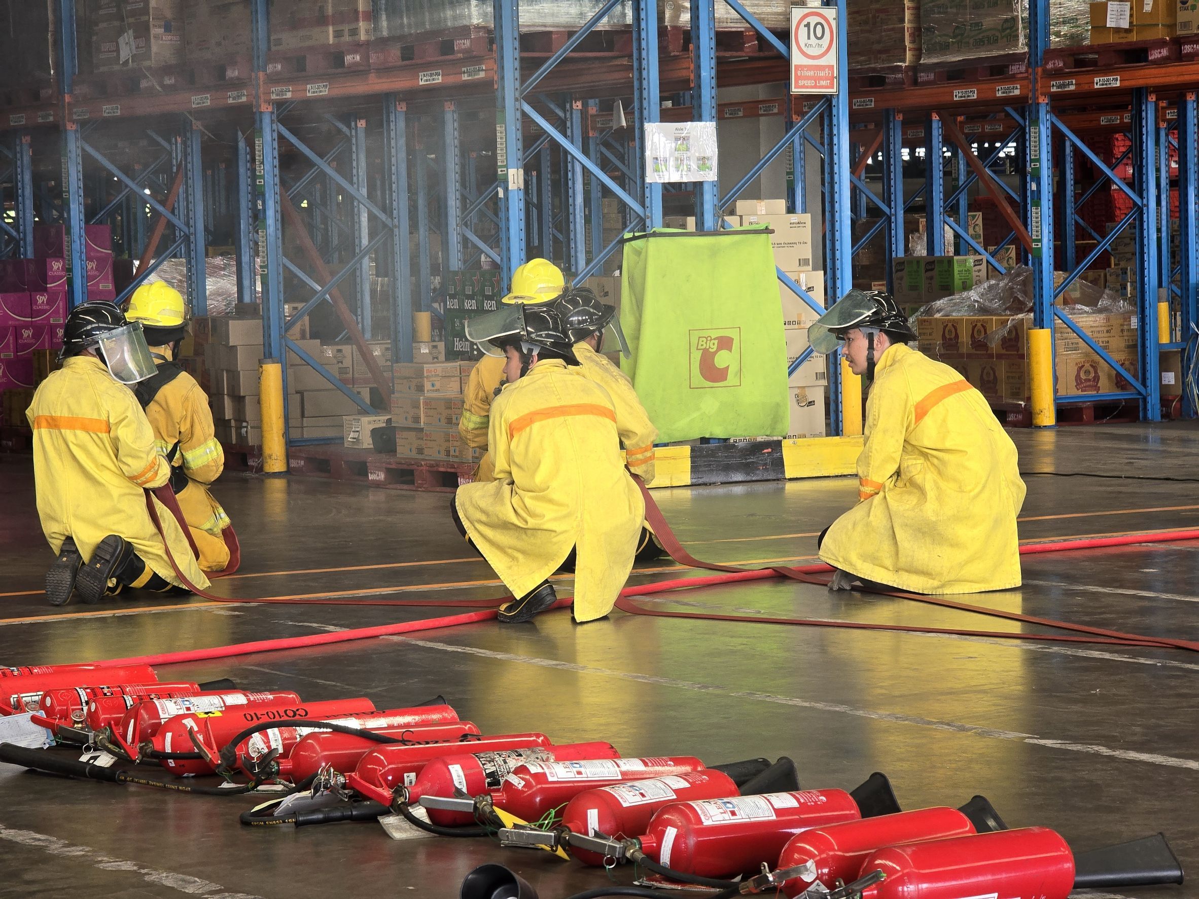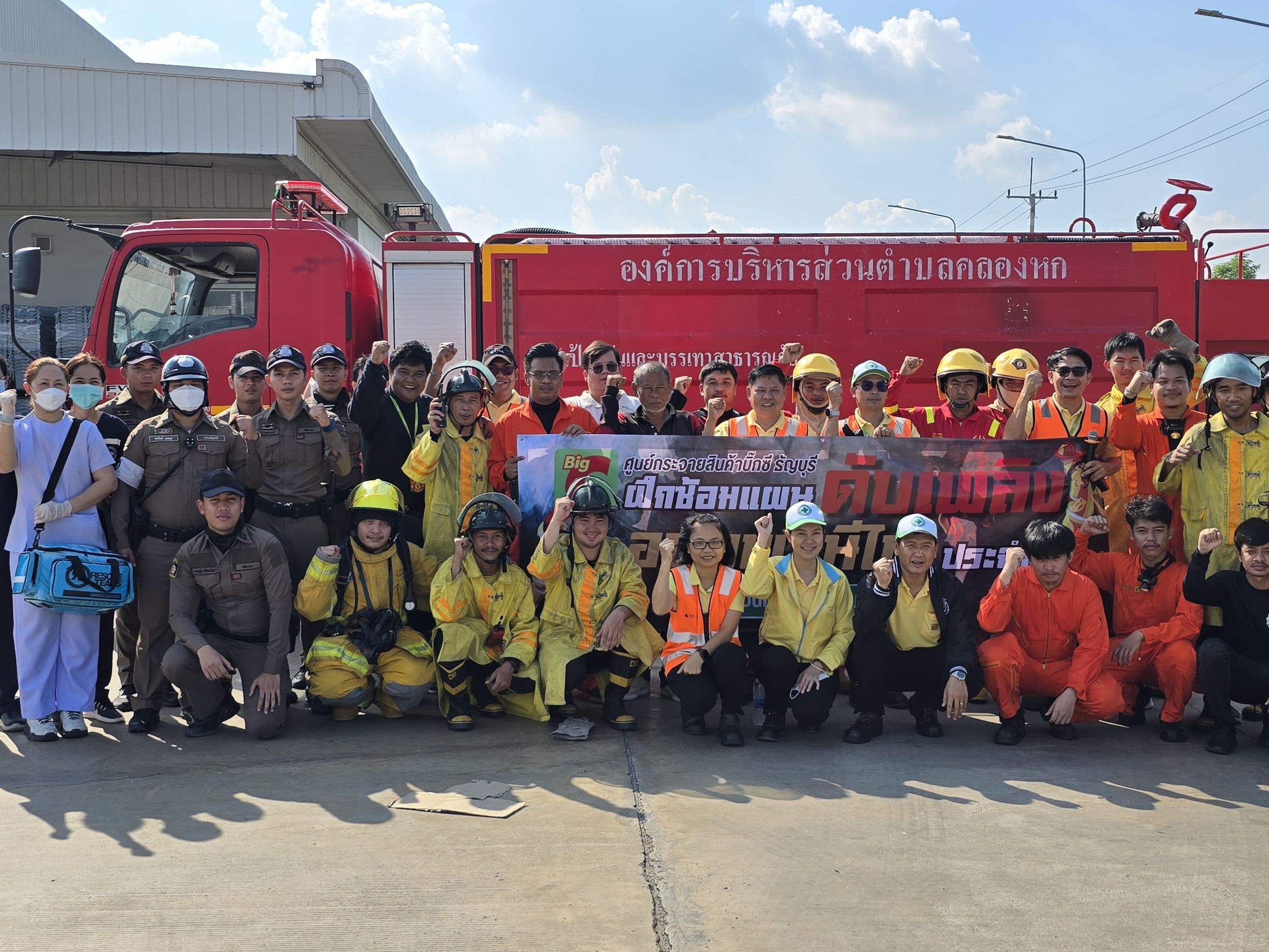 พร้อม นสต.ฝึกงาน 4 นาย ว.4 ร่วมซักซ้อมแผนเผชิญเหตุเพลิงไหม้คลังสินค้า กับเจ้าหน้าที่ดับเพลิงและพนักงานศูนย์กระจายสินค้าบิ๊กซี ณ ศูนย์กระจายสินค้าบิ๊กซีคลองหก หมู่ 3 ต.คลองหก อ.คลองหลวง จ.ปทุมธานี