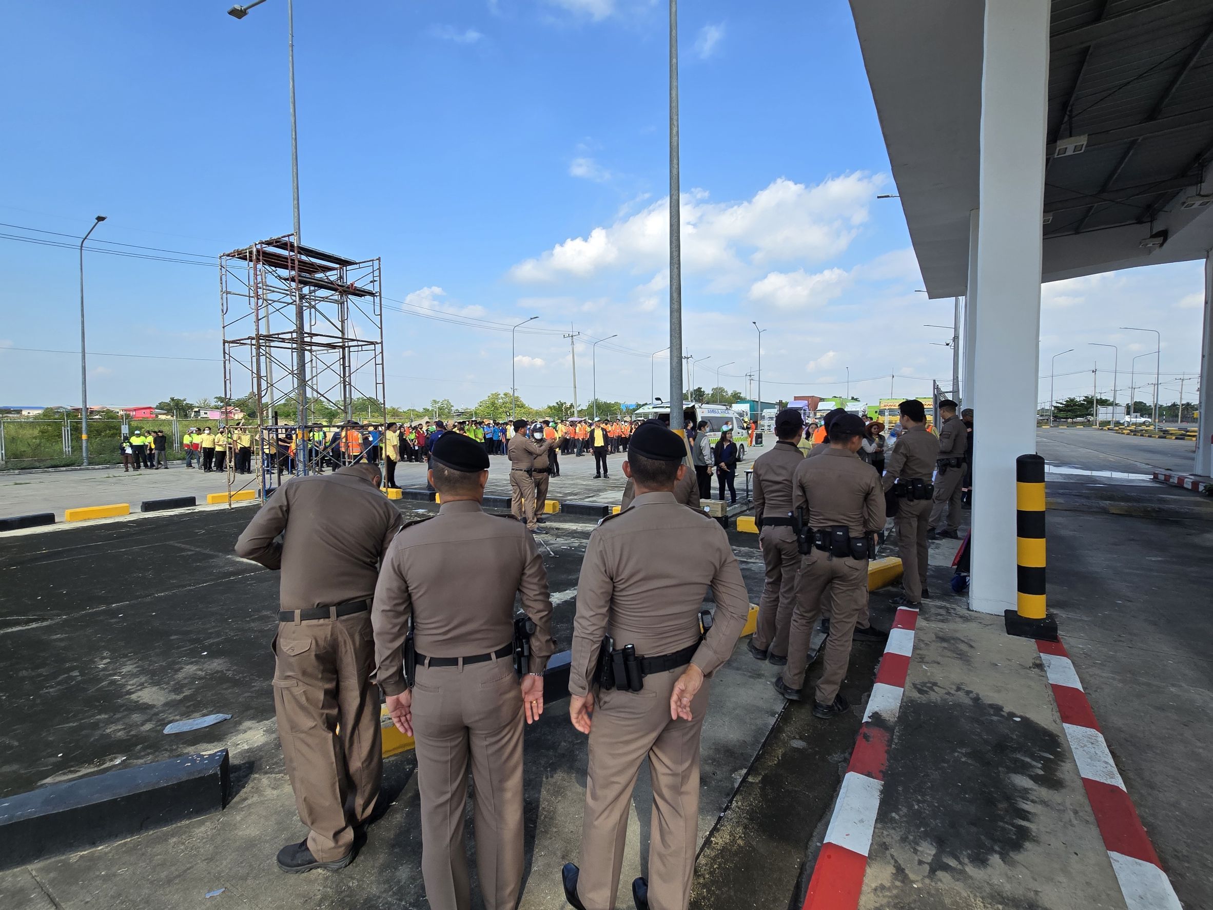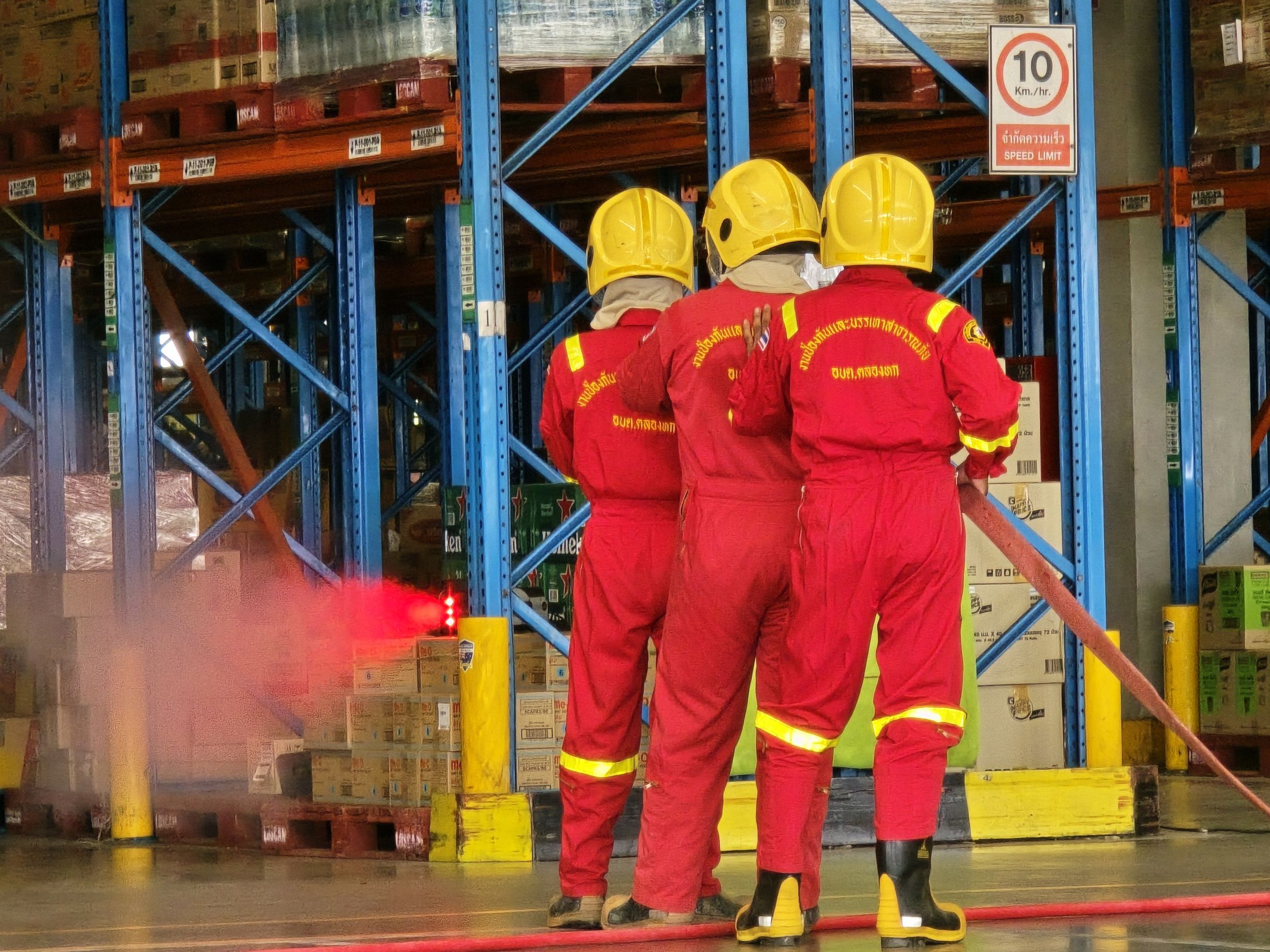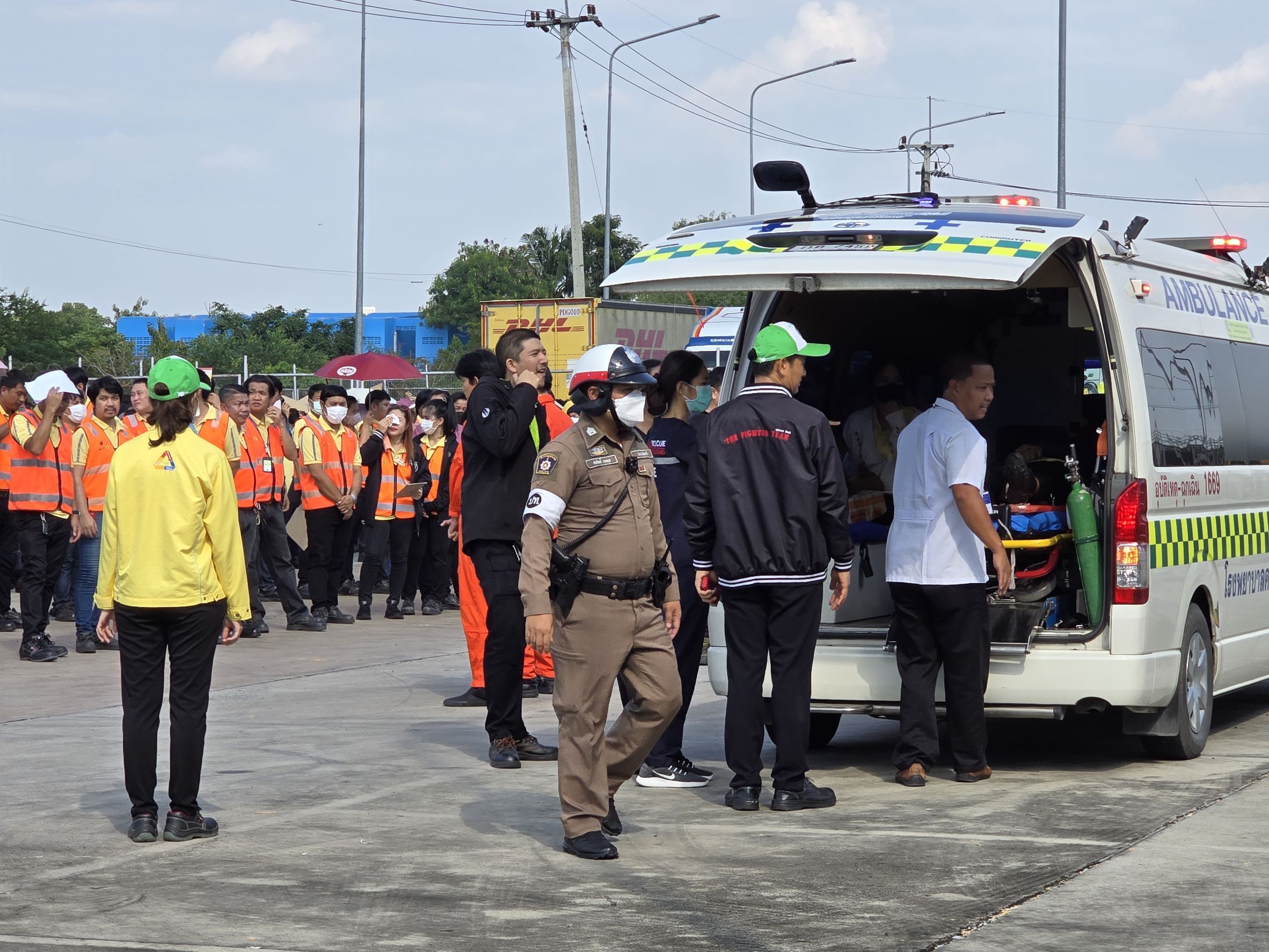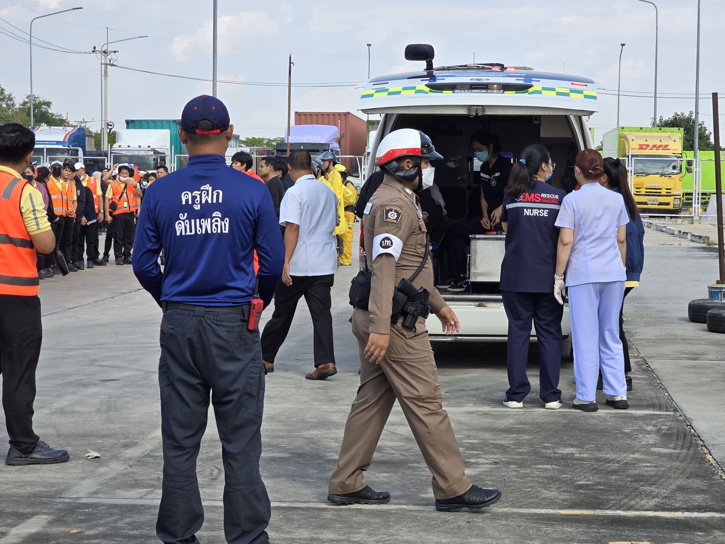 พ.ต.อ.รุ่งระวี สุขัง ผกก.สภ.คลองห้า ร่วมซักซ้อมแผนเผชิญเหตุเพลิงไหม้คลังสินค้า