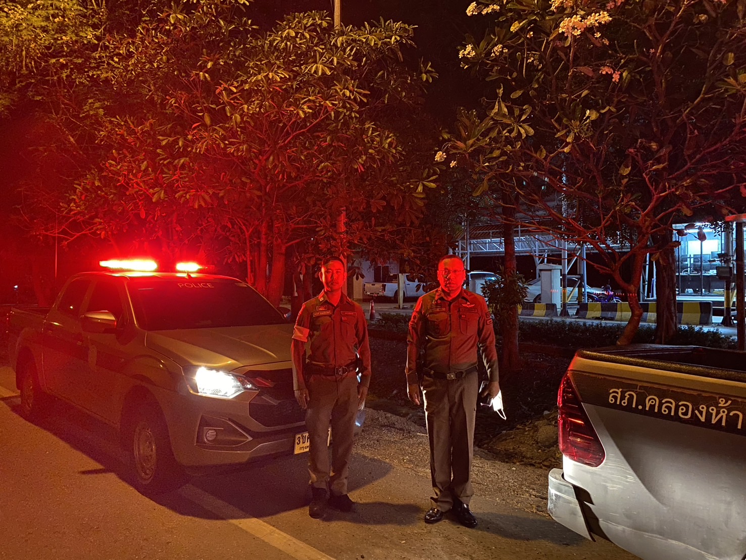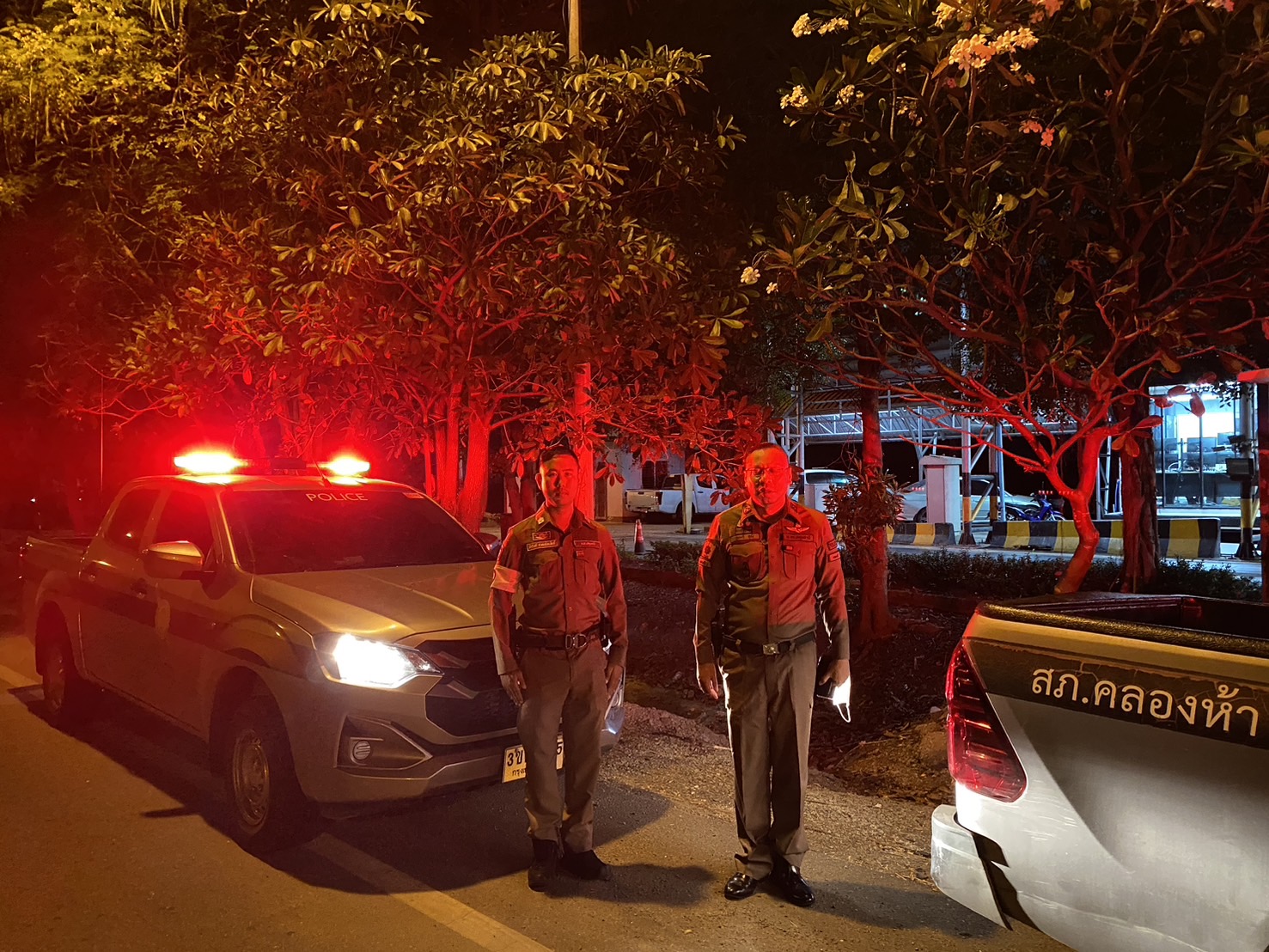 พ.ต.อ. รุ่งระวี สุขัง ผกก.สภ.คลองห้า ออก ว.4 สัมพันธ์ กับเจ้าหน้าที่จราจร สภ.คลองห้า เปิดสัญญาณไฟป้องกันเหตุ การรวมตัวแข่งขันรถในทาง