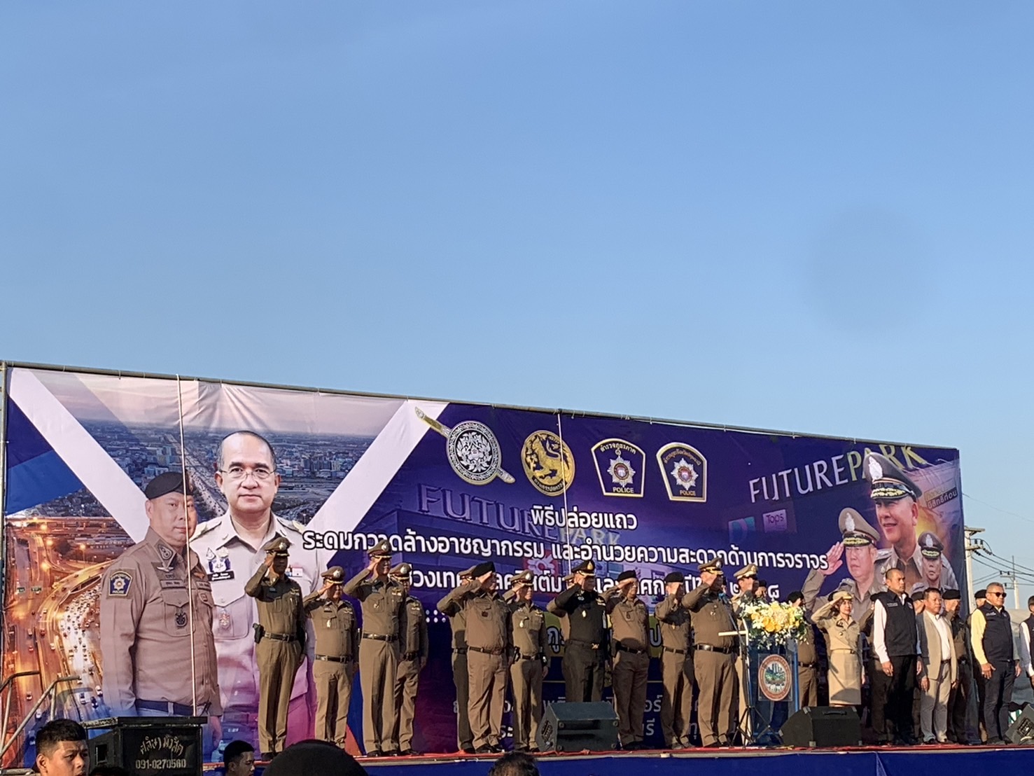 พร้อมเจ้าหน้าที่ตำรวจ สภ.คลองห้า ร่วมพิธีปล่อยแถวระดมกวาดล้างอาชญากรรมและอำนวยความสะดวกด้านการจราจรในช่วงเทศกาลคริสต์มาส และเทศกาลปีใหม่ 2568 เพื่อดูแลรักษาความปลอดภัยและความสงบเรียบร้อยของพี่น้องประชาชนที่จะเดินทางไปตามสถานที่ต่างๆ ให้เป็นเทศกาลแห่งความสุข รู้สึกปลอดภัยในชีวิตและทรัพย์สิน ณ บริเวณ ลานจอดรถด้านหน้าศูนย์การค้าฟิวเจอร์พาร์ครังสิต ถนนพหลโยธิน ตำบลประชาธิปัตย์ อำเภอธัญบุรี จังหวัดปทุมธานี