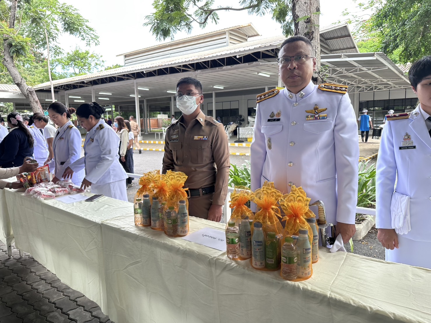 พร้อมกำลังรวม 6 นาย เข้าร่วมพิธีทำบุญตักบาตรถวายพระราชกุศล, พิธีถวายเครื่องราชสักการะ, วางพานพุ่มและจุดเทียนชัยถวายพระพรชัยมงคล โดยมีนายอำเภอคลองหลวงเป็นประธานในพิธี
