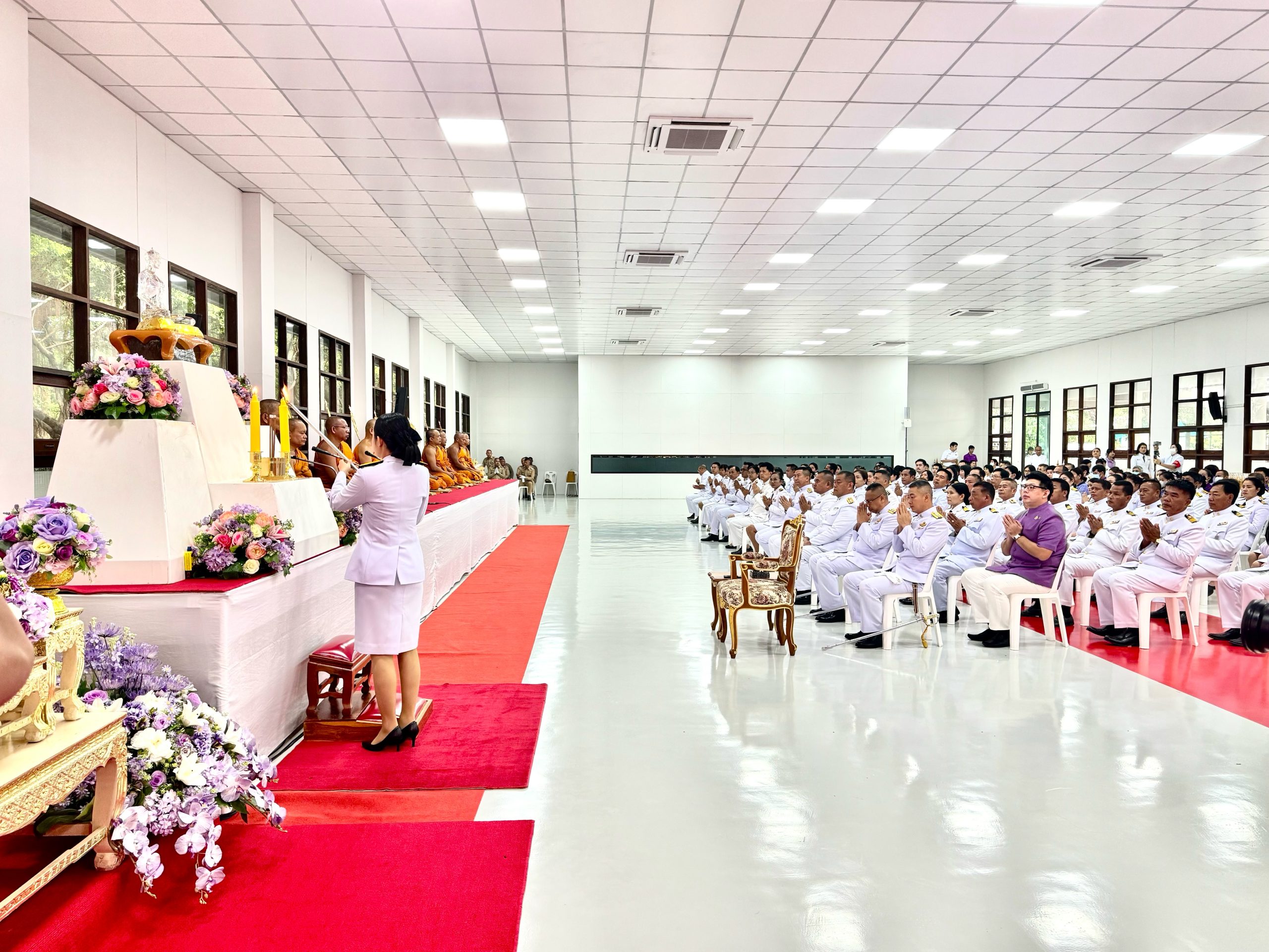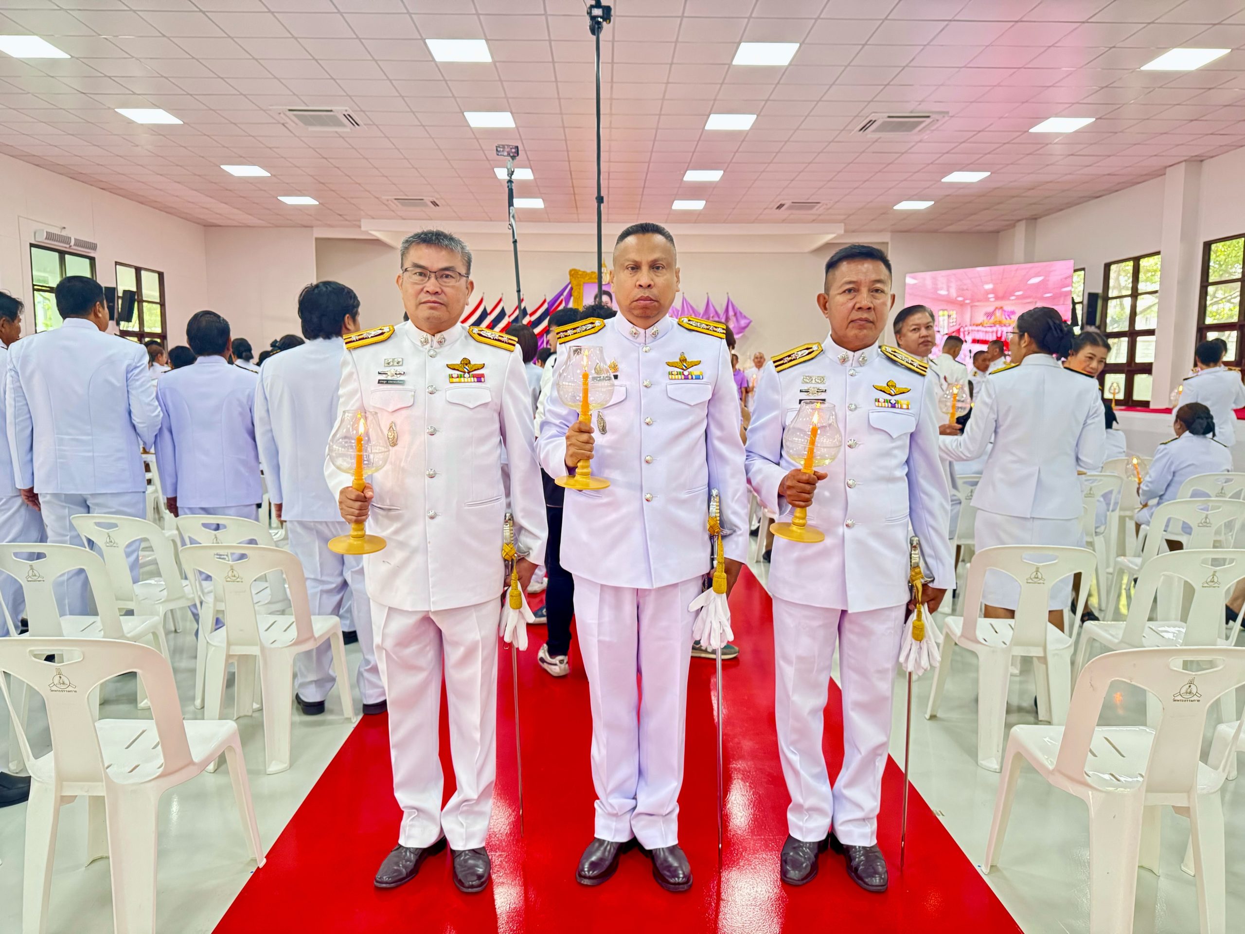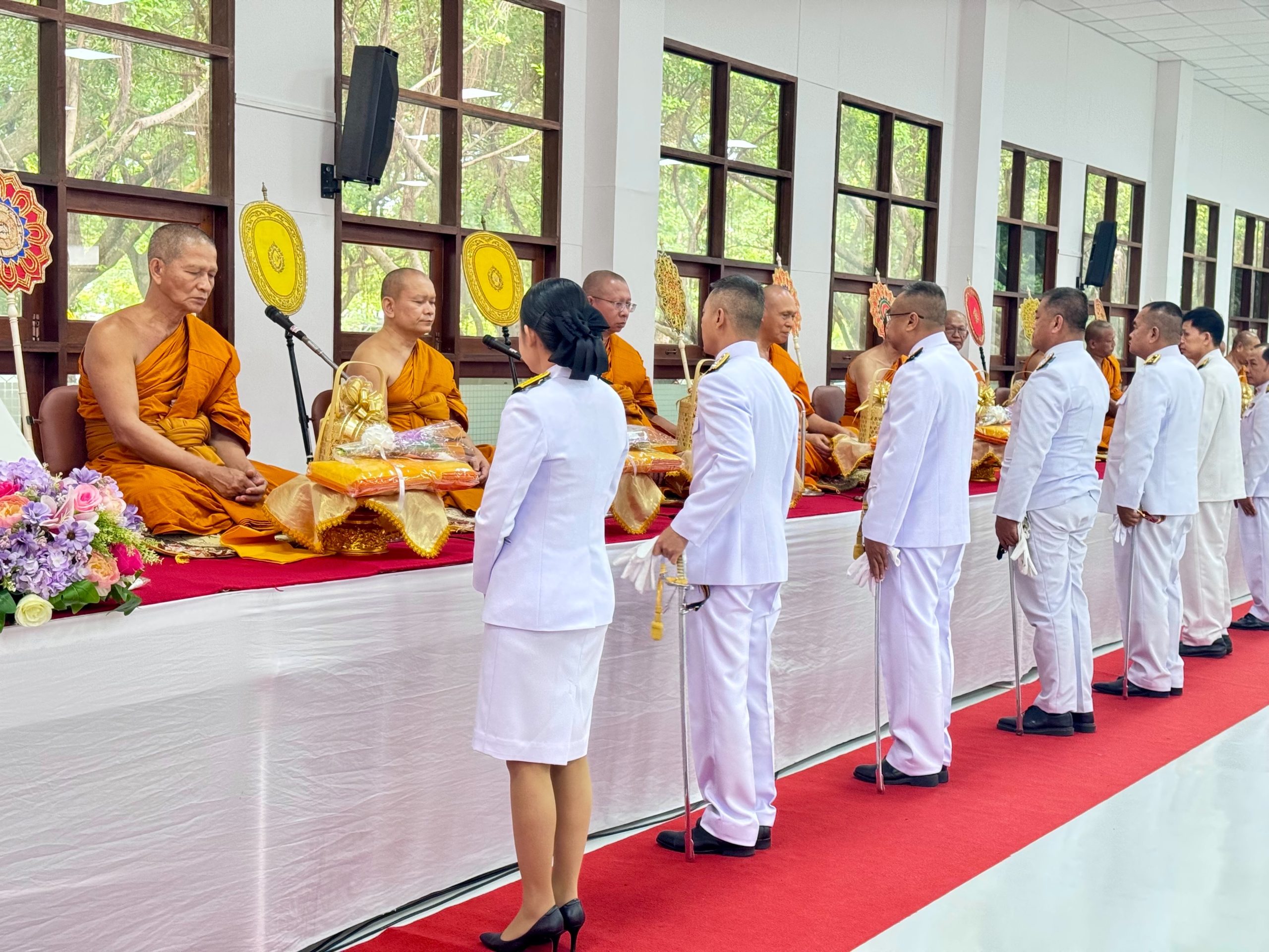 พ.ต.อ.รุ่งระวี สุขัง ผกก.สภ.คลองห้า ข้าร่วมพิธีทำบุญตักบาตรถวายพระราชกุศล, พิธีถวายเครื่องราชสักการะ, วางพานพุ่มและจุดเทียนชัยถวายพระพรชัยมงคล