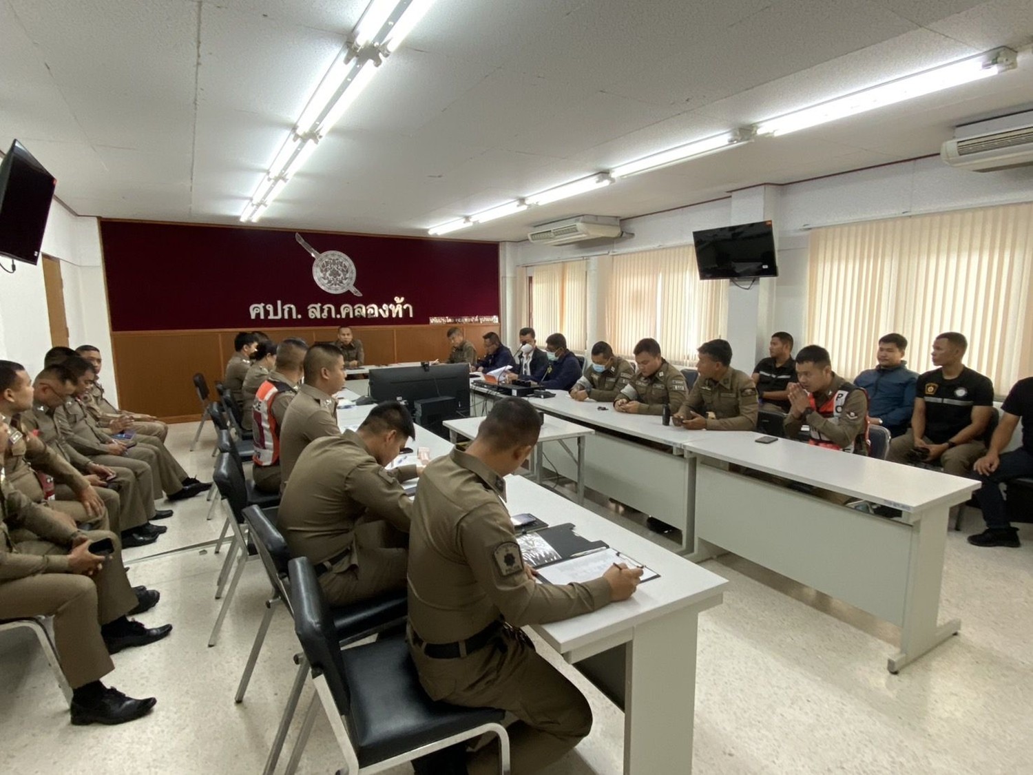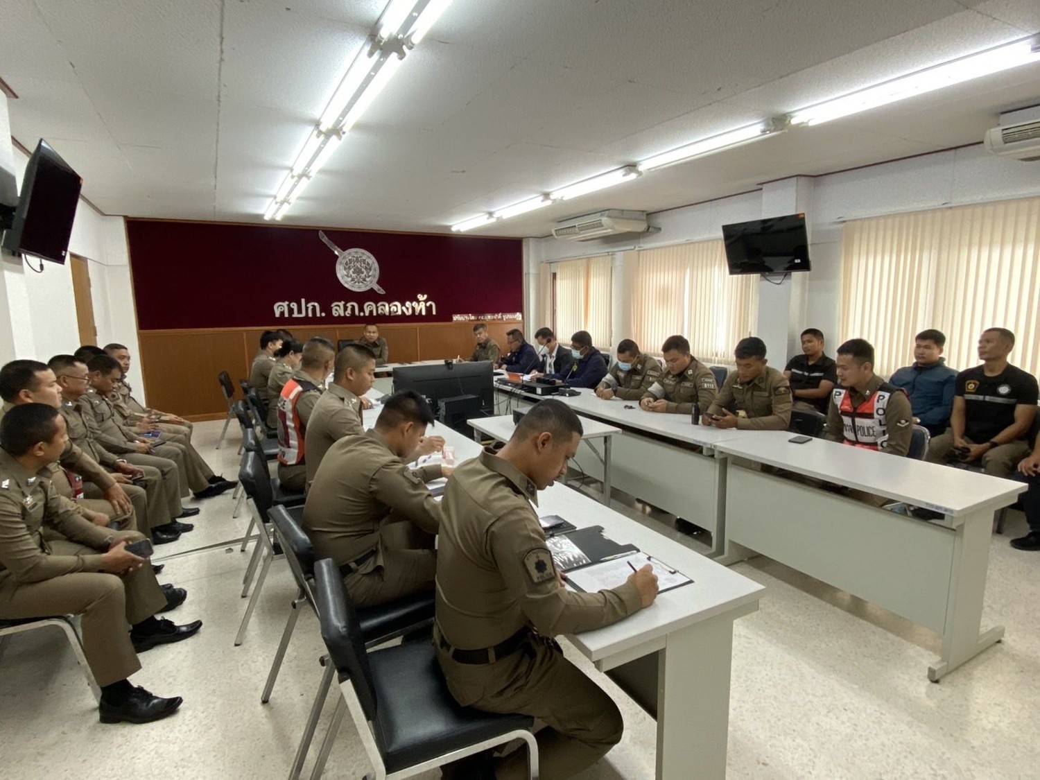 พร้อมข้าราชการตำรวจในสังกัด เข้าร่วมประชุมประจำเดือน พฤษภาคม 2568 และประชุมวิเคราะห์อาชญากรรม ณ ห้อง ศปก. ชั้น 3 สภ.คลองห้า