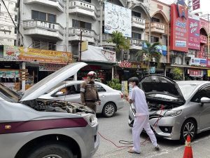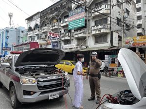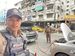 ร.ต.อ.ธีระชัย กอแก้ว รองสว.จร.สภ.คลองห้า พร้อม ส.ต.ท.ทศวรรษ พรมมาแข้ สายตรวจ 121 ช่วยเหลือรถยนต์เเบตเตอรี่หมด กลางซอยหมู่บ้านพรธิสาร 3 ทำการพ่วงแบตเตอรี่ สตาร์ทติดเดินทางต่อได้ ได้รับคำขอบคุณ