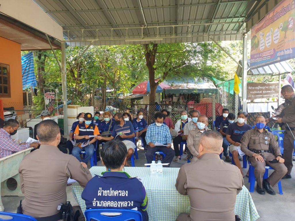 ร่วมกับฝ่ายปกครอง กำนัน,ผู้ใหญ่บ้าน, ผู้ช่วยผู้ใหญ่บ้าน, จนท.อสม., จนท.รพ.สต.,ในพื้นที่ ม.5 ต.คลองหก อ.คลองหลวง จ.ปทุมธานี ร่วมกันประชุมปรึกษาหารือเกี่ยวกับปัญหายาเสพติดในพื้นที่ชุมชน ทำกล่องรับความคิดเห็นแจ้งเบาะแสยาเสพติด เพื่อรับทราบข้อมูลบุคคลที่มีพฤติกรรมยุ่งเกี่ยวกับยาเสพติด เพื่อจะร่วมกันแก้ไขปัญหายาเสพติดในชุมชน ตลอดจนรับรู้ถึงปัญหาและอุปสรรคในการดำเนินงานด้านการบำบัดผู้ที่ติดยาเสพติดให้มีประสิทธิภาพและเกิดประโยชน์สูงสุด ณ ที่ทำการผู้ใหญ่บ้าน ม.5 ต.คลองหก อ.คลองหลวง จ.ปทุมธานี
