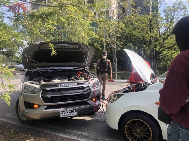 รับแจ้งเหตุรถยนต์แบตเตอรี่หมด หน้ามหาวิทยาลัยราชมงคลธัญบุรี ต.คลองหก อ.คลองหลวง จ.ปทุมธานี ได้ทำการช่วยเหลือจั้มแบตเตอรี่รถยนต์เป็นที่เรียบร้อย และประสานเจ้าของรถเปลี่ยนแบตเตอรี่เนื่องจากหมดอายุแล้ว ได้รับคำขอบคุณ