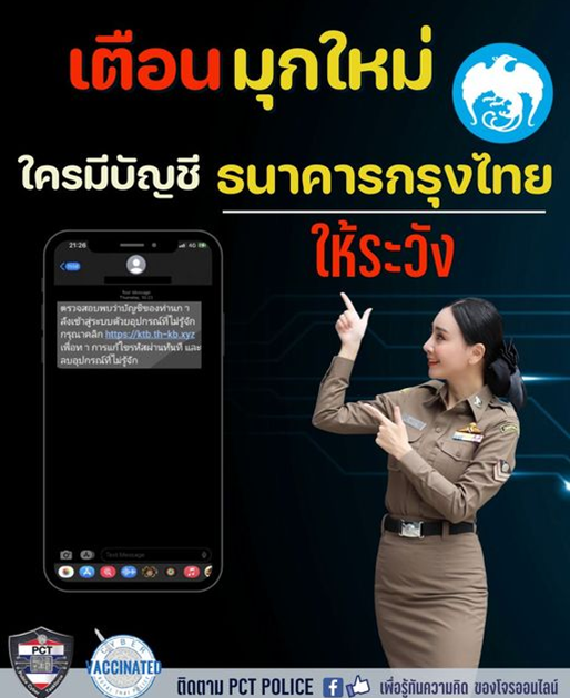 โปรดระวัง มิจฉาชีพ ส่ง SMS หลอกลวง และลิงค์ปลอม อ้างเป็นธนาคารกรุงไทย