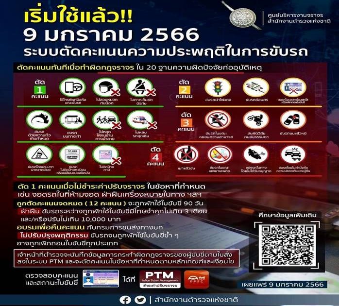 ระบบตัดคะแนนความประพฤติในการขับรถ หรือ ตัดแต้มใบขับขี่ ดีเดย์ทั่วประเทศ 9 มกราคม 2566 มาตรการสำคัญเสริมสร้างวินัยจราจร เป้าหมายเพื่อลดอุบัติเหตุบนท้องถนน