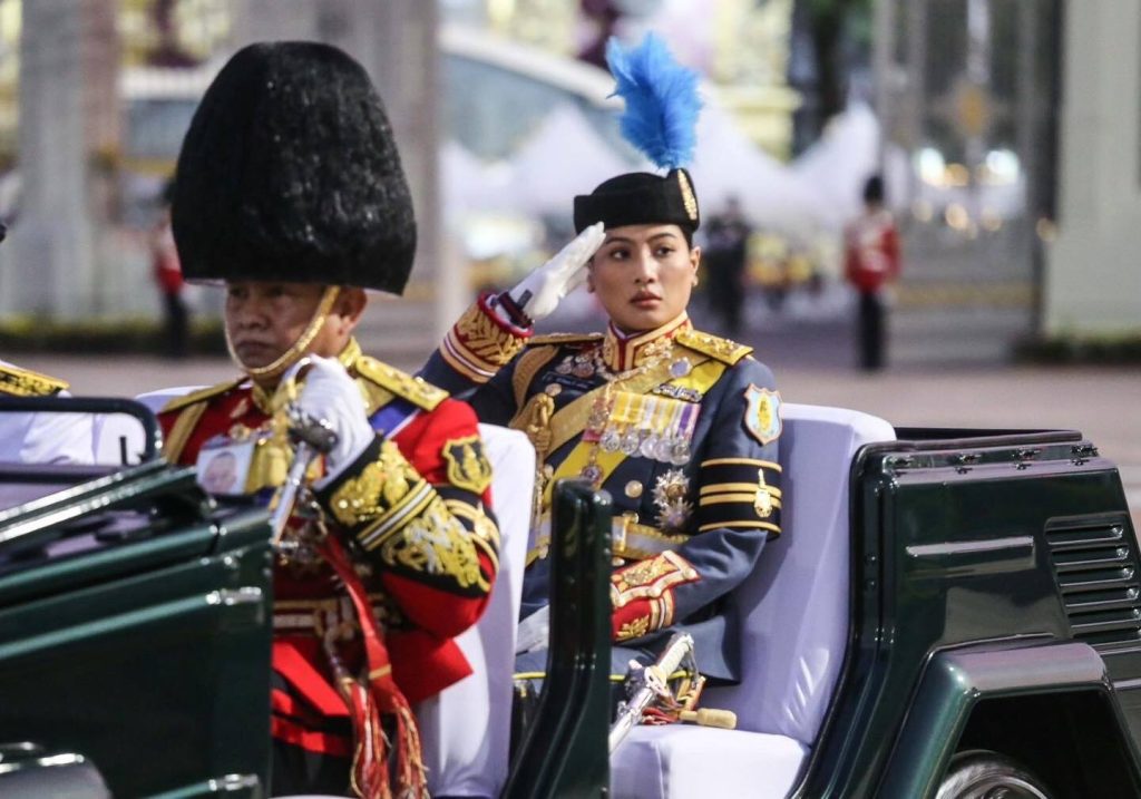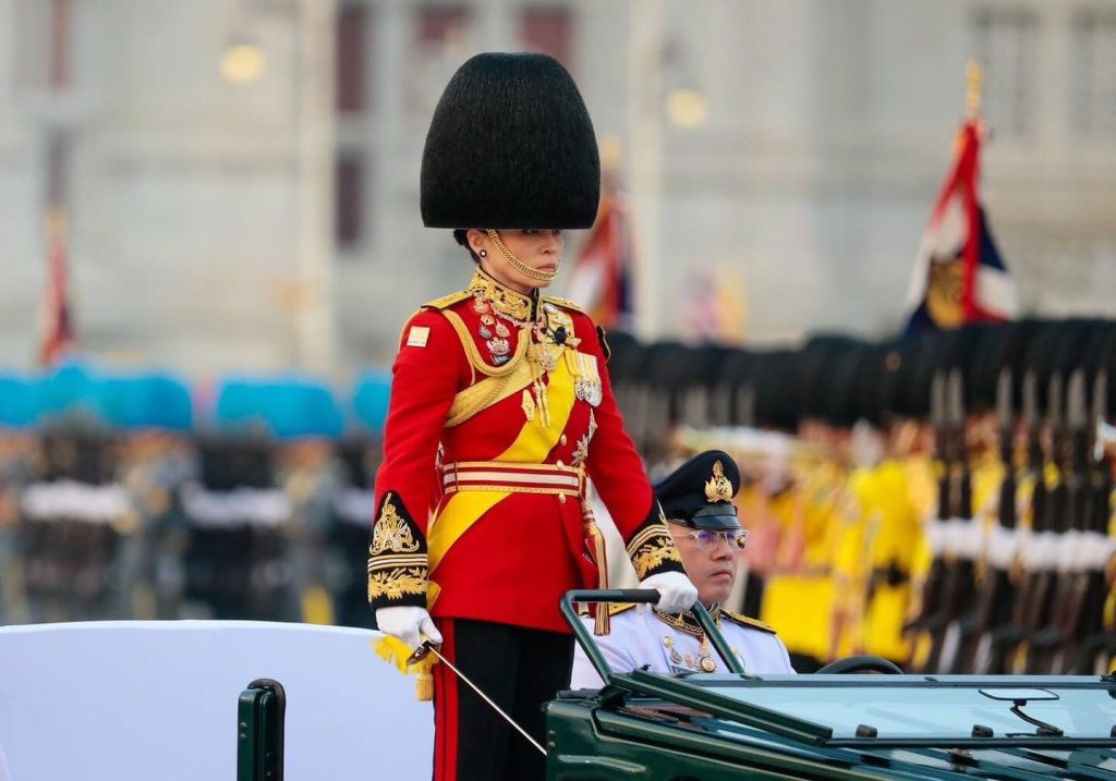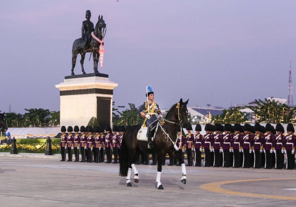 ในการนี้พลเอกหญิงสมเด็จพระนางเจ้าสุทิดา พัชรสุธาพิมลลักษณพระบรมราชินี ทรงนำการสวนสนามของทหารมหาดเล็กราชวัลลภรักษาพระองค์และทหารรักษาพระองค์สามเหล่าทัพในตำแหน่ง “ องค์ผู้บังคับการกองผสม ” พร้อมด้วยพลเอกหญิง สมเด็จพระเจ้าลูกเธอ เจ้าฟ้าสิริวัณณวรี นารีรัตนราชกัญญา ร่วมสวนสนาม ทรงม้านำขบวนกองพันทหารม้ารักษาพระองค์ ในตำแหน่ง “ องค์ผู้บังคับกองพันทหารม้ารักษาพระองค์ “