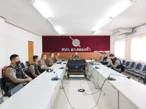 พร้อมเจ้าหน้าที่ที่เกี่ยวข้องเข้าร่วม ณ ห้องประชุม ศปก.สภ.คลองห้า