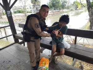 ว่าที่ ร.ต.ต.ประดับเพชร ใจยาว สายตรวจตำบลคลองหกขณะออกตรวจได้รับแจ้ง จากศูนย์วิทยุ สภ.คลองห้า ว่ามีชายนอนอยู่บนศาลาพักผู้โดยสารหน้าโรงเรียนวัดผลาหาร จึงเข้าตรวจสอบทราบชื่อนายจัสตุรัส เตาแก้ว อายุ 45 ปี อยู่บ้านเลขที่ 257 หมู่ที่ 9 ตำบลสำโรงชัยอำเภอ อำเภอไพศาลี จังหวัดนครสวรรค์ ได้เดินทางมาหาญาติที่ต.คลองหก ไม่มีที่พักอาศัยจึงอาศัยศาลาที่พักโดยสารเป็นที่หลับนอน และไม่มีอาหารกิน จึงได้ให้ความช่วยเหลือซื้ออาหารให้ทานน้ำดื่มและมอบเงินส่วนหนึ่งไว้เป็นค่าอาหาร ได้ประสานผู้ใหญ่บ้าน นายสกล กลายเพ็ชร เพื่อติดต่อญาติหาที่พักอาศัยต่อไป ได้รับคำขอบคุณ