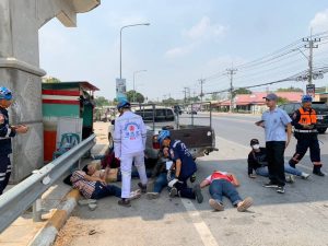 พ.ต.อ.รุ่งระวี สุขัง ผกก.สภ.คลองห้า ร่วมซ้อมแผนเผชิญเหตุอุบัติเหตุหมู่บนท้องถนน