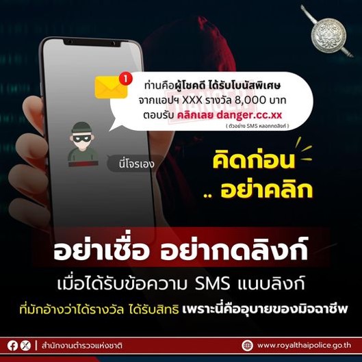 คิดก่อน อย่าคลิกลิงก์ มุกมิจฉาชีพ หลอกว่าเป็น “ผู้โชคดี” ได้เงิน โบนัส รางวัล สิทธิต่างๆ ที่แท้เป็นก