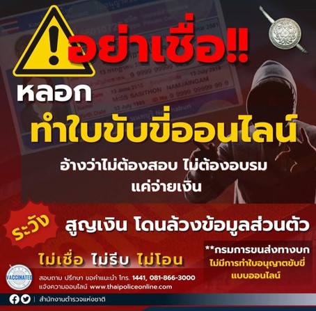 ระบาดอีกแล้ว!! อย่าเชื่อ … มิจฉาชีพหลอก “ทำใบขับขี่ออนไลน์” สำนักงานตำรวจแห่งชาติ พบว่า ขณะนี้