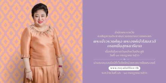 ขอเชิญชวนประชาชนร่วมลงนามถวายพระพร “สมเด็จพระเจ้าลูกเธอ เจ้าฟ้าพัชรกิติยาภา นเรนทิราเทพยวดี กรมหลวงราชสาริณีสิริพัชร มหาวัชรราชธิดา” เนื่องในโอกาสวันคล้ายวันประสูติ