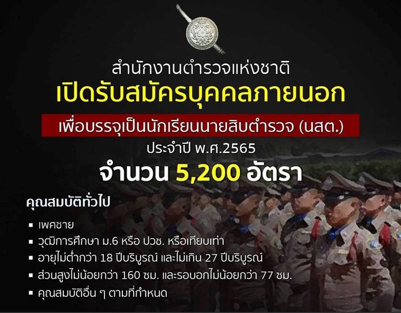 รับสมัครบุคคลภายนอก เพื่อบรรจุเป็นนักเรียนนายสิบตำรวจ (นสต.) ประจำปี พ.ศ.2565