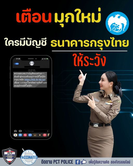 เตือนมุกใหม่ ใครมีบัญชีธนาคารกรุงไทย ให้ระวัง โปรดระวัง มิจฉาชีพ ส่ง SMS หลอกลวง และลิงค์ปลอม อ้างเป