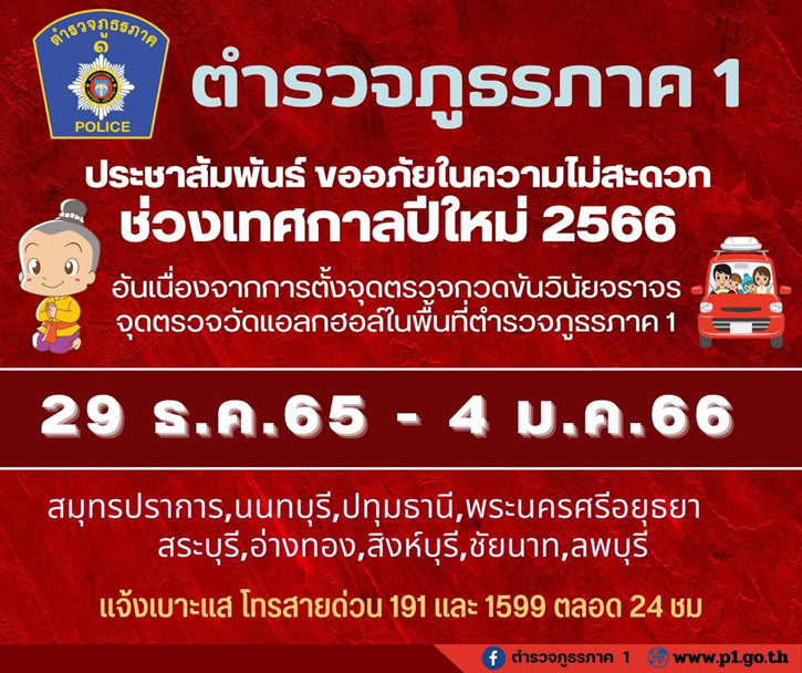 #ประชาสัมพันธ์ ช่วงเทศกาลปีใหม่ 2566 ระหว่างวันที่ 29 ธันวาคม 2565 ถึงวันที่ 4 มกราคม 2566 ตำรวจภูธร