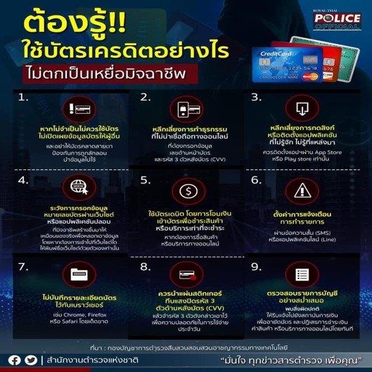 ต้องรู้!! ใช้บัตรเครดิตอย่างไร ไม่ตกเป็นเหยื่อมิจฉาชีพ 9 วิธี ใช้บัตรเครดิตอย่างปลอดภัย 1.หากไม่จำเป