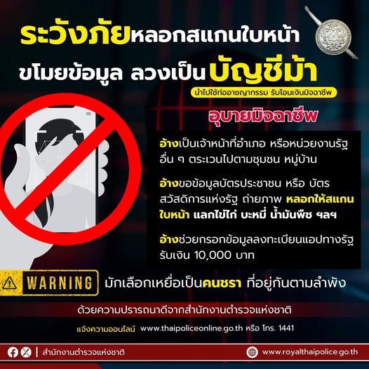 ระวังภัยหลอกสแกนใบหน้า ขโมยข้อมูล ลวงเป็นบัญชีม้า มุกโจรหลอกให้เป็น #บัญชีม้า เครื่องมือมิจฉาชีพ นำไ