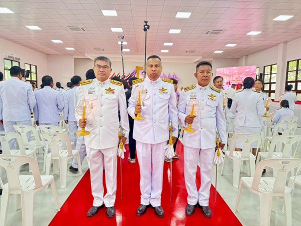 พ.ต.อ.รุ่งระวี สุขัง ผกก.สภ.คลองห้า ข้าร่วมพิธีทำบุญตักบาตรถวายพระราชกุศล, พิธีถวายเครื่องราชสักการะ, วางพานพุ่มและจุดเทียนชัยถวายพระพรชัยมงคล