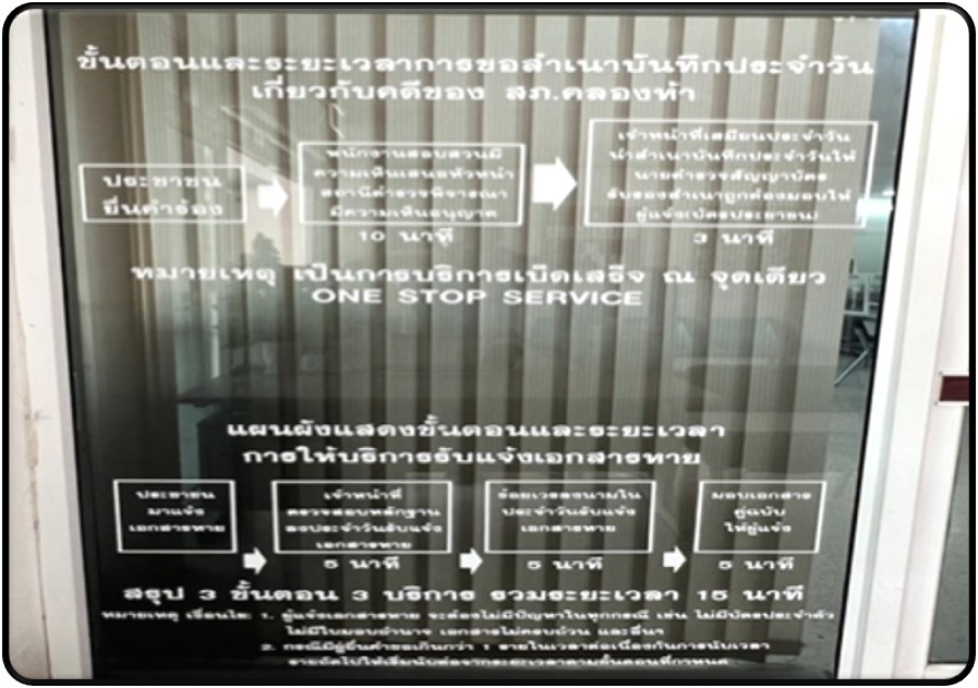 2. การสื่อสาร บทบาทภารกิจและผลการปฏิบัติงานของสถานีตำรวจภูธรคลองห้าให้กับผู้มารับบริการได้รับทราบ