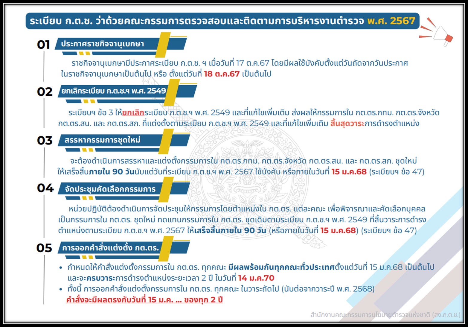 *** อ่านเพิ่มเติม ระเบียบ ก.ต.ช. ว่าด้วยคณะกรรมการตรวจสอบและติดตามการบริหารงานตำรวจ พ.ศ. 2567***