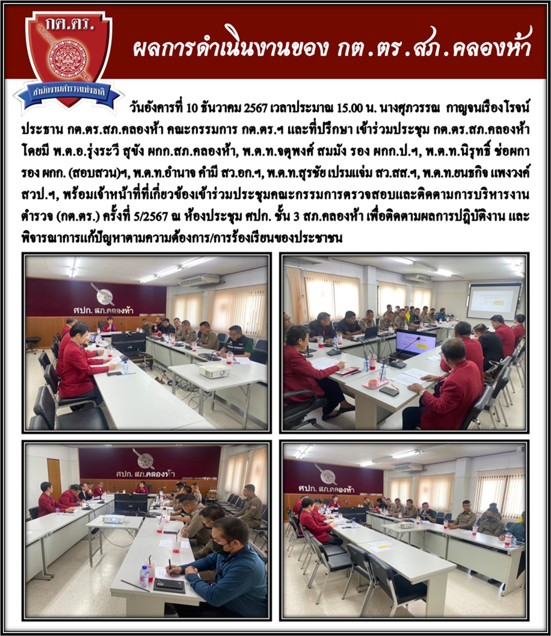 ผลการดำเนินงานของ กต.ตร.สภ.คลองห้า