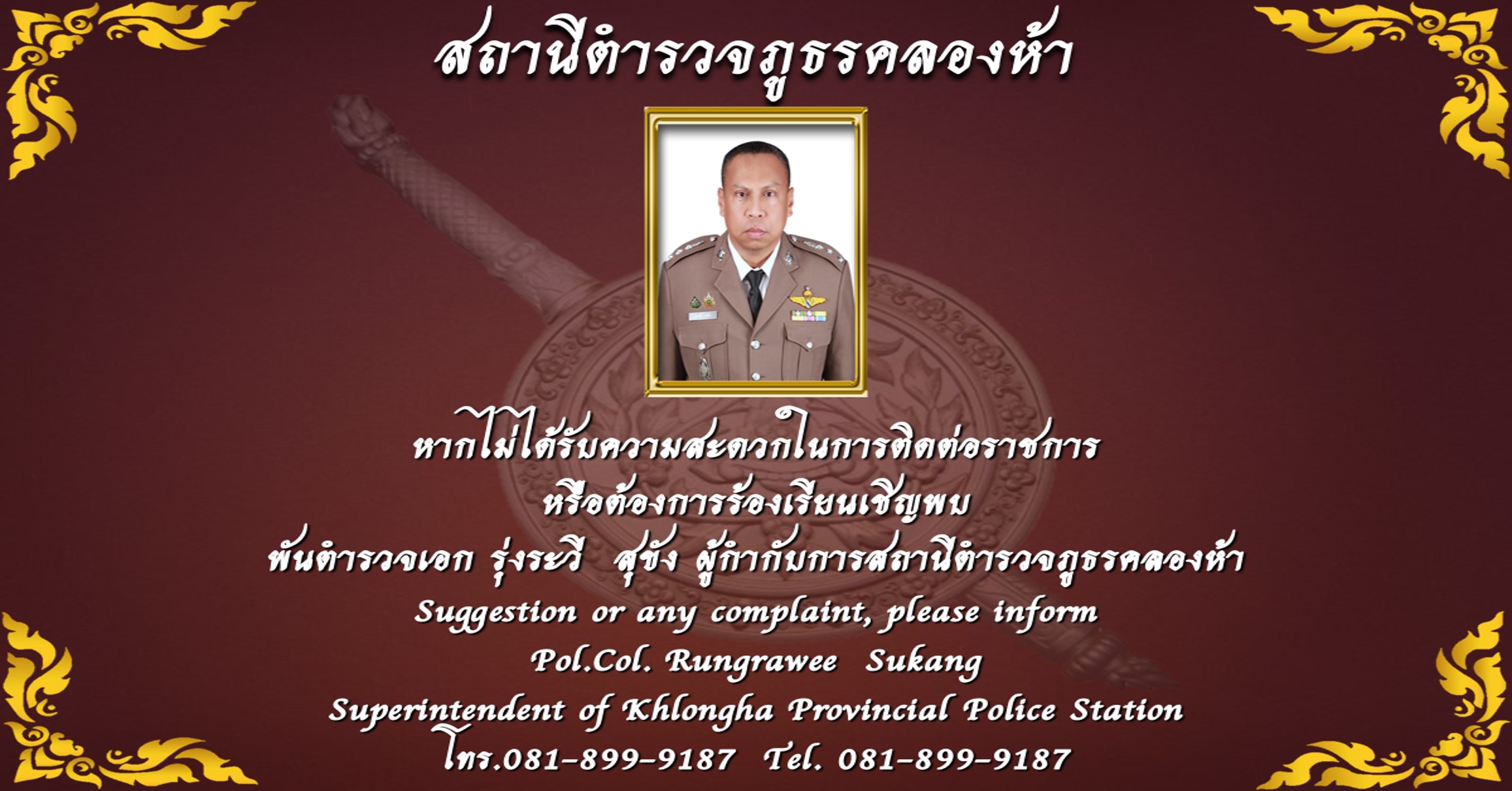 วันอังคาร ที่ 13 พฤษภาคม 2568 เวลา 13.00 น. – พ.ต.อ.รุ่งระวี สุขัง ผกก.สภ.คลองห้า – พ.ต.